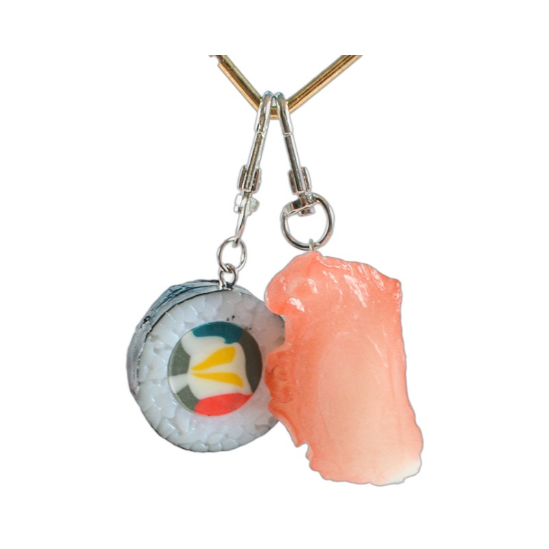 Simulation Japanese salmon small sushi keychain door buckle fun Japanese food and play model creative bag pendant