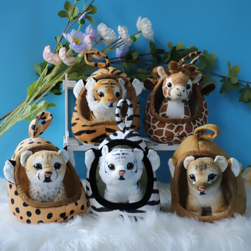 Simulation little tiger pet nest plush toy fun giraffe doll leopard Little Lion doll children gift