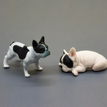 Simulation mini black and white French Bulldog puppy home office desktop decoration prop model children's small gift toy