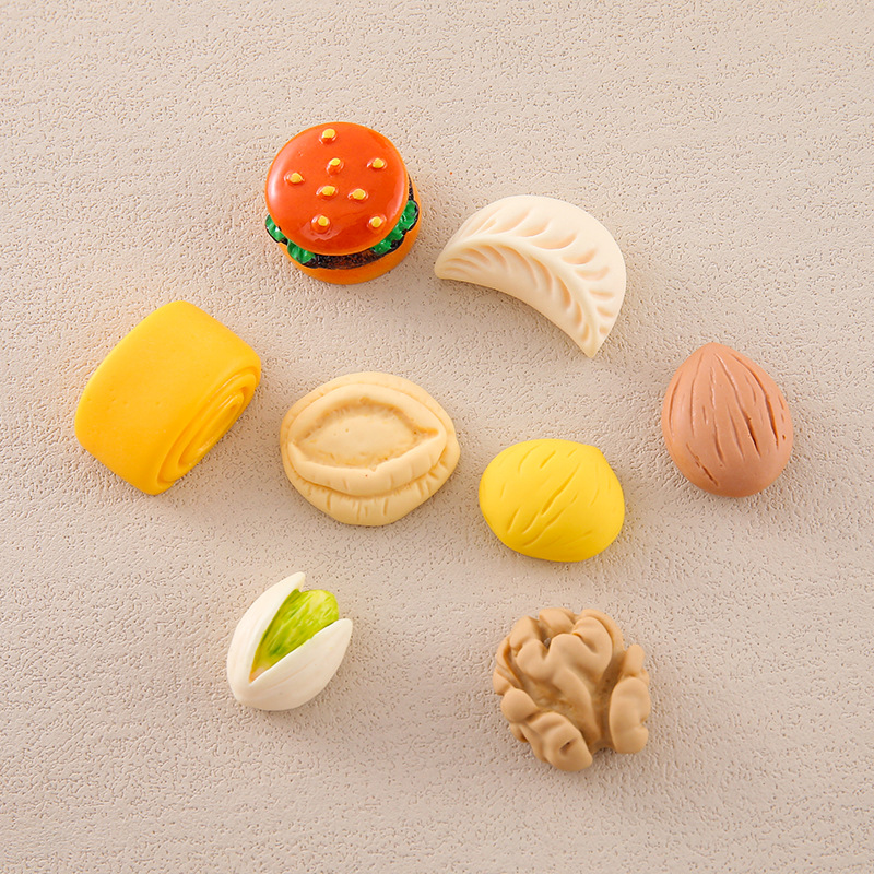 Simulation pistachio hamburger walnut steamed bread diy cream glue mobile phone case shoe buckle hairpin resin jewelry accessories