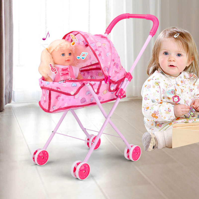 Simulation Play House Toys Simulation Baby Iron Trolley with Doll Trolley Toy Girls Wholesale