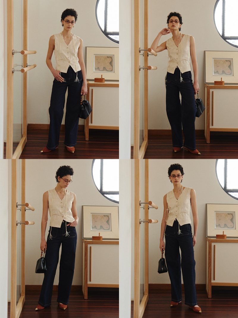 nameOriginal | Sinan anti-wear doctrine retro sense bright line double pocket design stitching straight tube wide leg jeans 4869 |