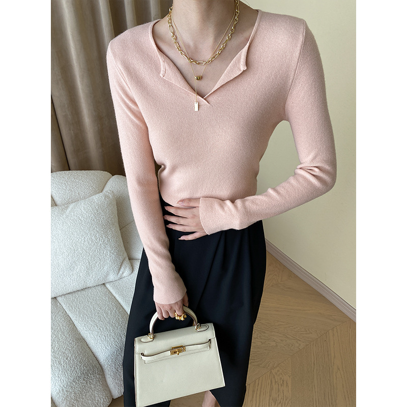 | nameOriginal | Sinan casual scissors small V-neck paper piece French slim slimming high elastic bottoming sweater SN4258 |