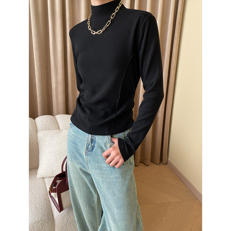 | nameOriginal | Sinan deconstructed split design French style half turtleneck pleated waist brushed shoulder bottoming shirt SN4837 |
