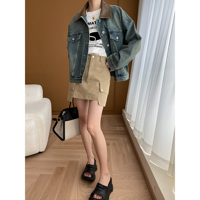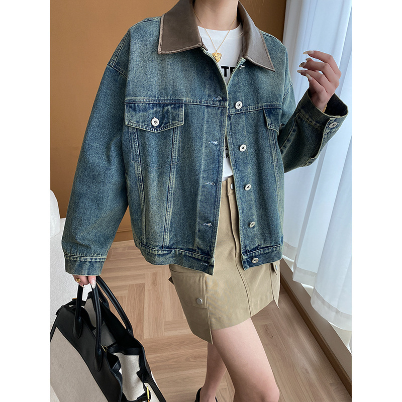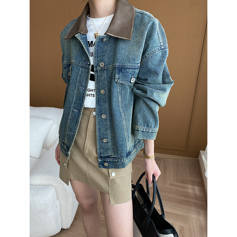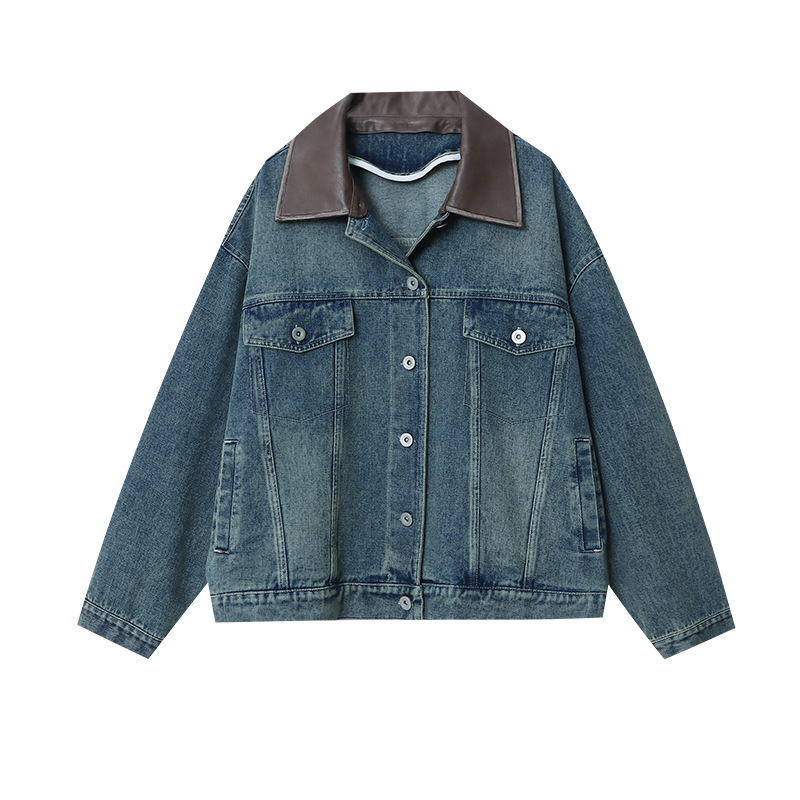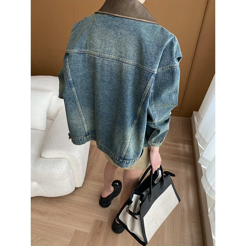 | nameOriginal | Sinan detachable brushed PU small leather collar design Denim coat 2024 early spring new SN5244 |