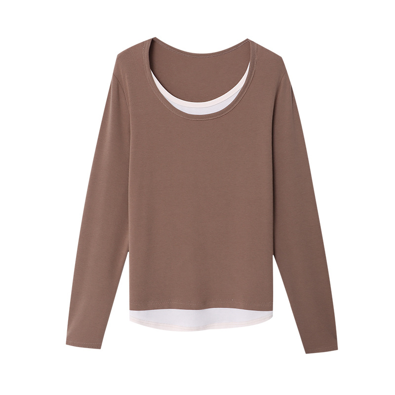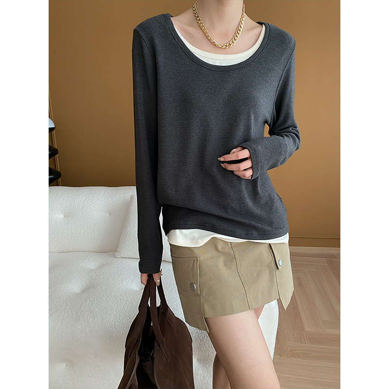 Sinan fashionable blogger style niche fake two-piece round neck bottoming shirt T-shirt 2024 early spring new SN5034
