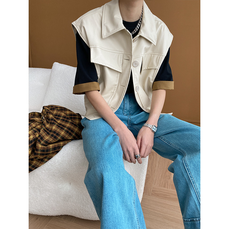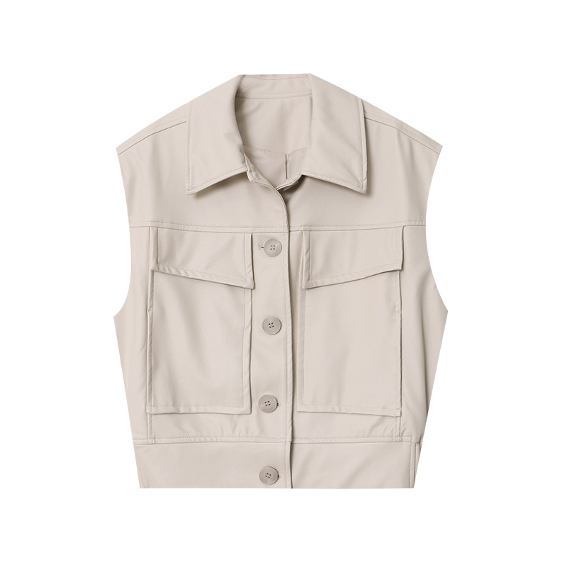 | nameOriginal | Sinan fashionable casual tone Design double pocket PU leather waistcoat loose vest coat short SN5310 |