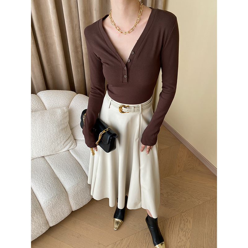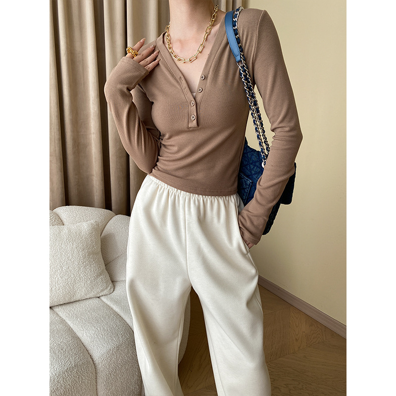 | nameOriginal | Sinan French style half placket V-neck slim fit waist slimming slightly brushed thin velvet skin-friendly bottoming shirt SN4753 |