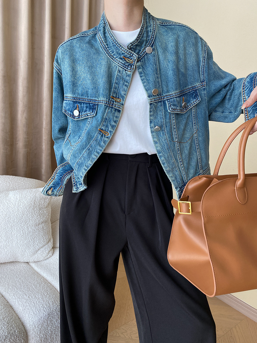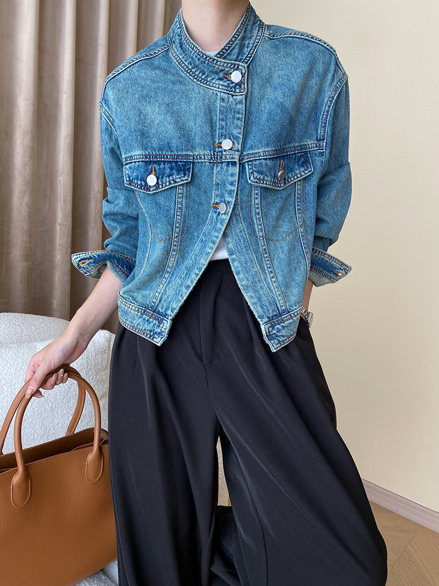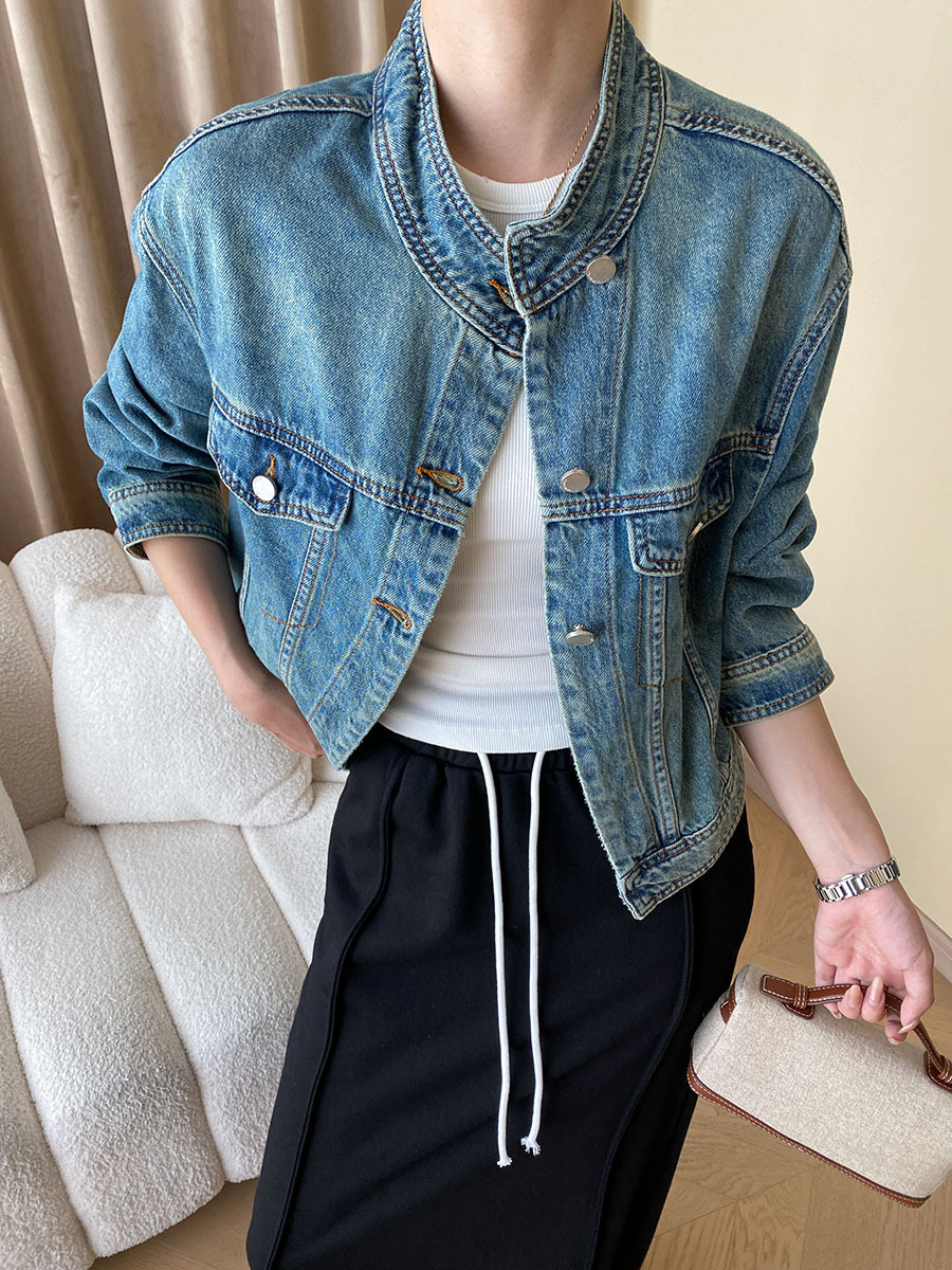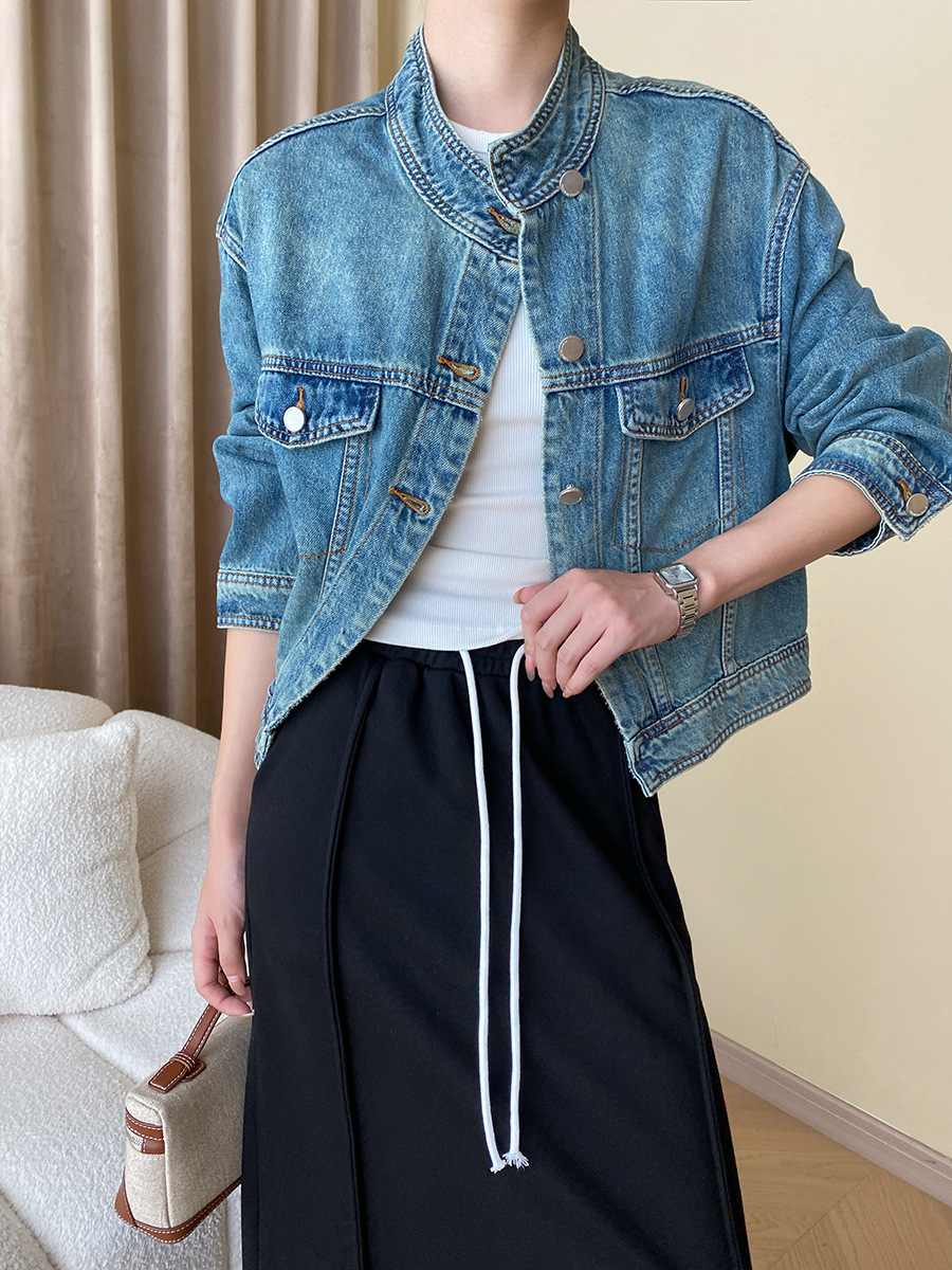 | nameOriginal | Sinan high-end modern tone early autumn heavy industry washed stand collar jacket Denim coat short SN4059 |