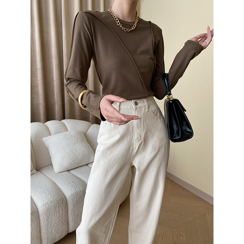 | nameOriginal | Sinan Irregular Deconstruction Design Sense Early Autumn Crewneck Shoulder Fashionable Slim T-shirt Base Shirt SN3978 |