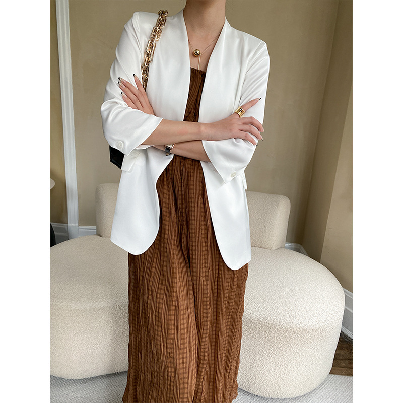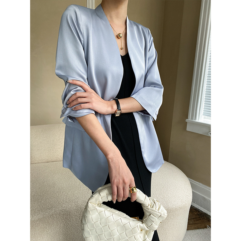 | nameOriginal | Sinan New Chinese Collarless Smooth Gloss Satin Commuter Sunscreen Suit Jacket Thin SN3740 |