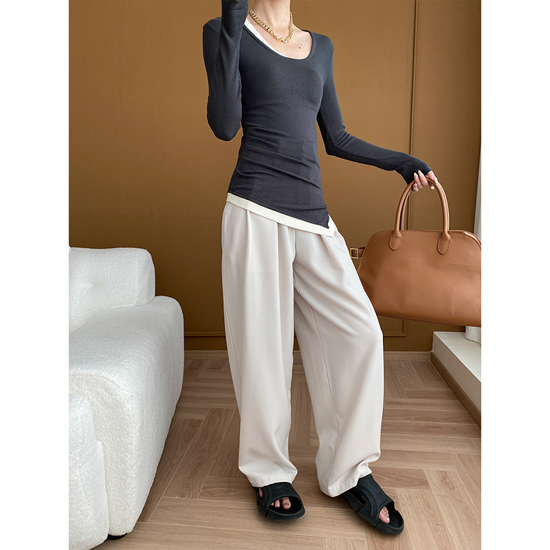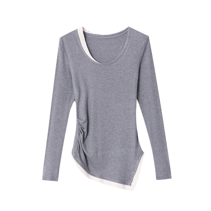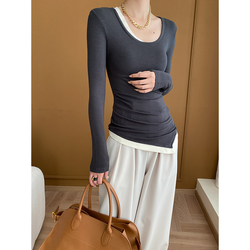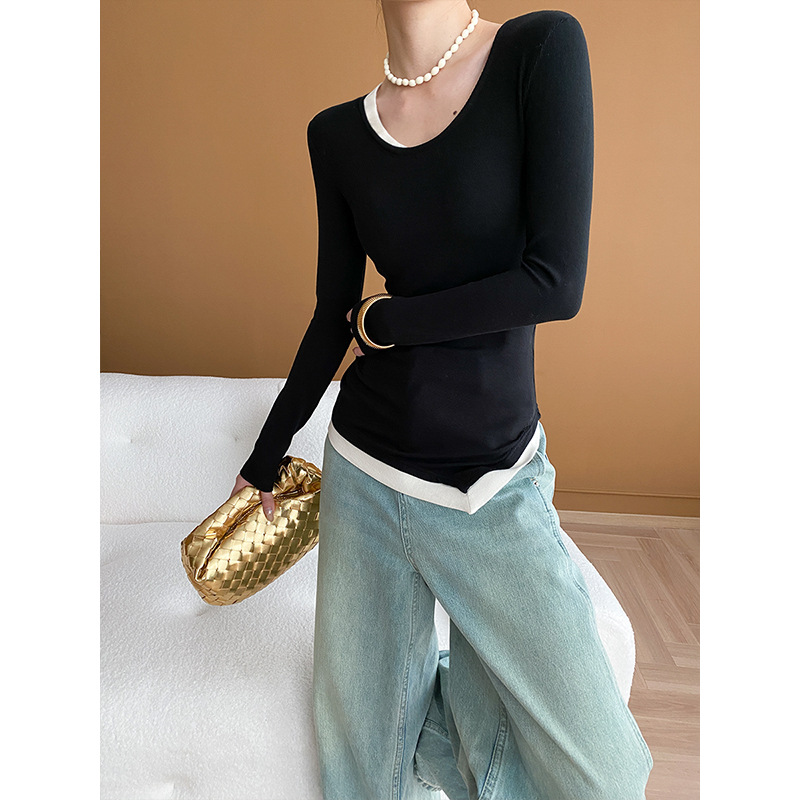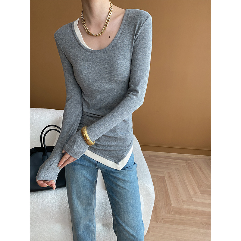 Sinan niche designer irregular fake two-piece thread T-shirt bottoming shirt 2024 early spring new SN4975