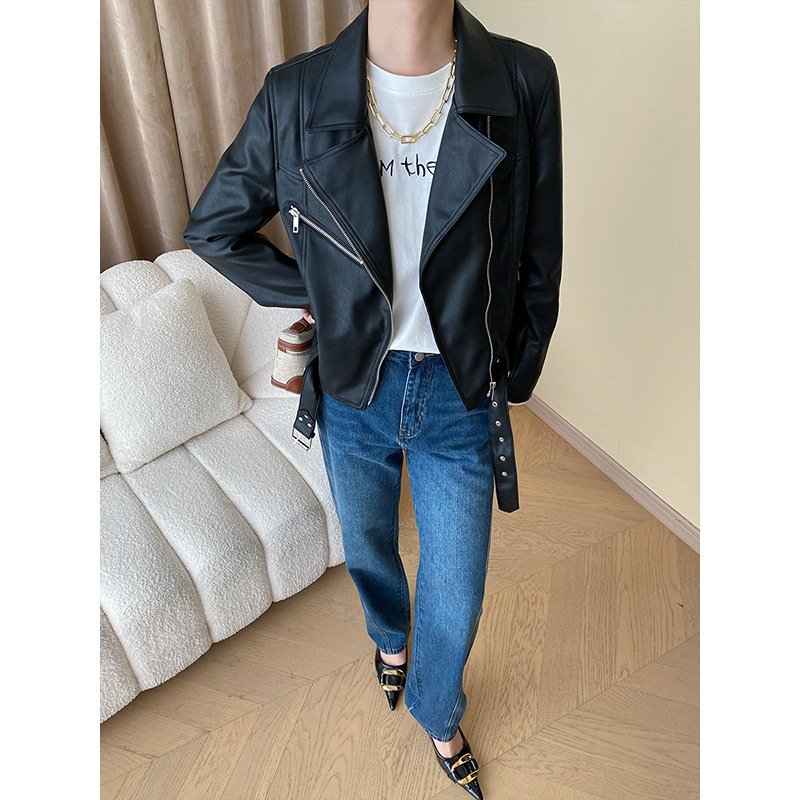 | nameOriginal | Sinan oblique placket zipper design casual street motorcycle style jacket leather coat high-grade sense SN4343 |