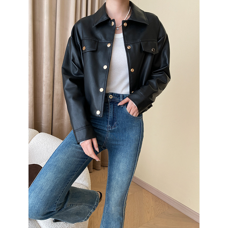 | nameOriginal | Sinan profile Tibetan meat style French lapel loose jacket leather coat short design sense SN4486 |