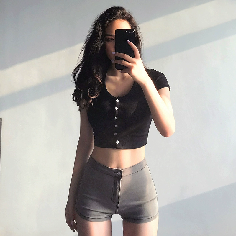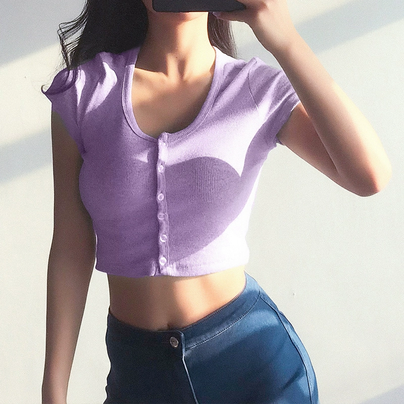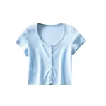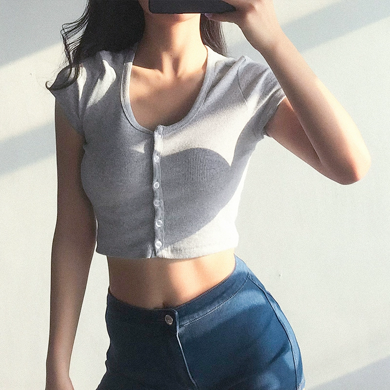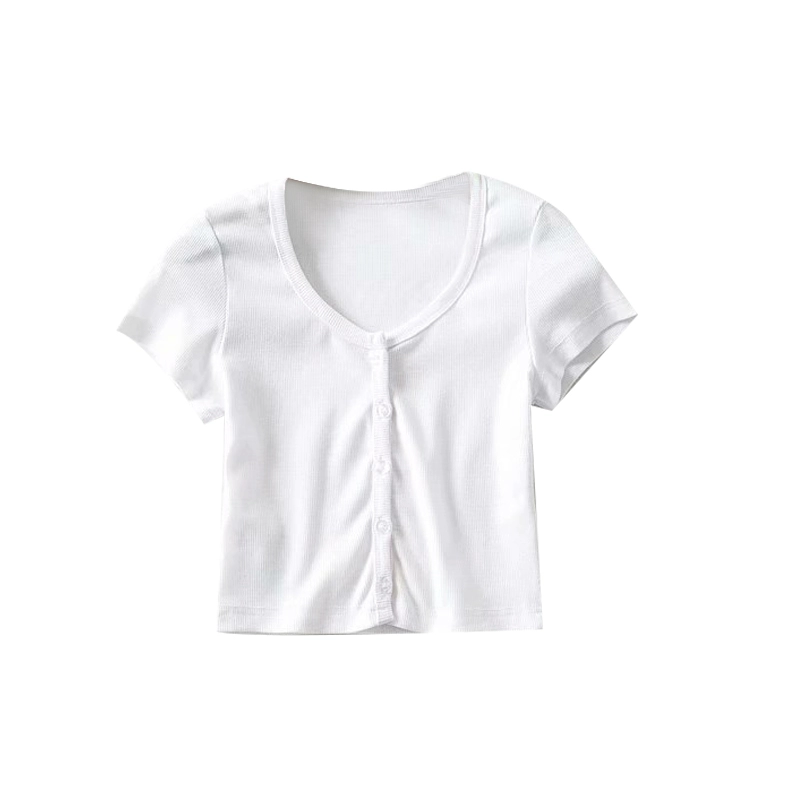 Single-breasted short-sleeved slim U-neck top cardigan T-shirt