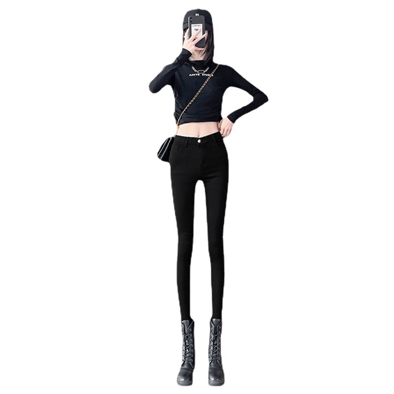 | nameOriginal | Single button leggings women's pants spring and autumn thin high waist slimming tight slim fit pencil small black pants outer wear |