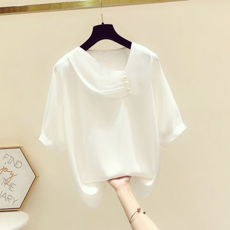 | nameOriginal | Single Piece/French Beaded Oblique Collar White Short-sleeved Shirt Women's 2023 Summer High Waist Slim A- line Skirt |