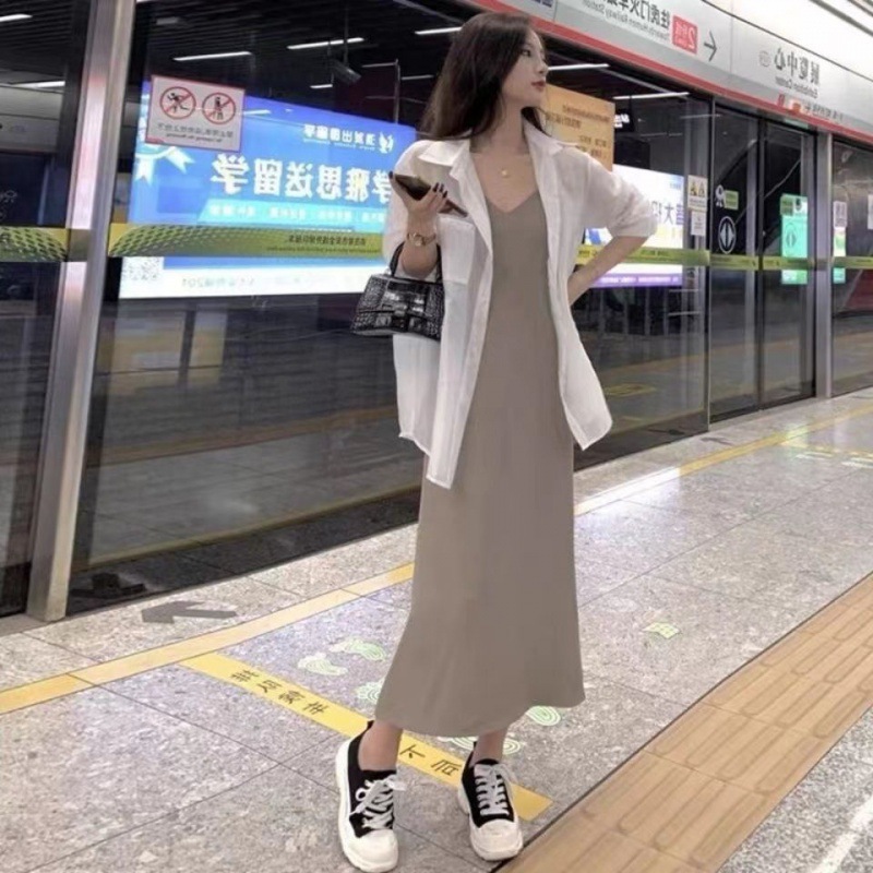 | nameOriginal | Single/plus size chubby girl light ripe royal elder sister wind female spring and summer white sunscreen shirt condole belt dress two-piece set 200kg |