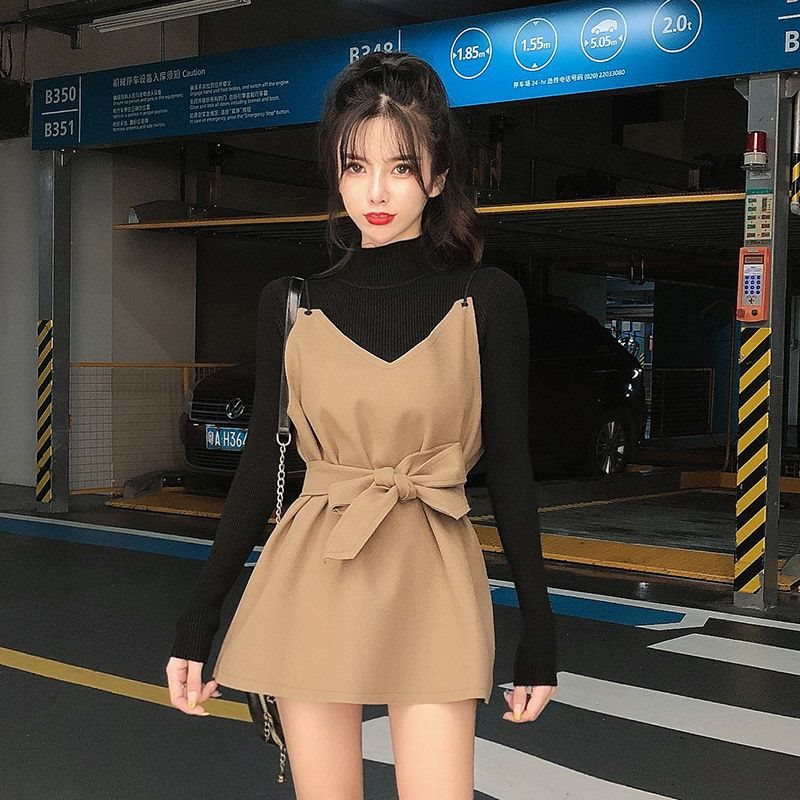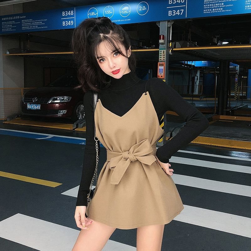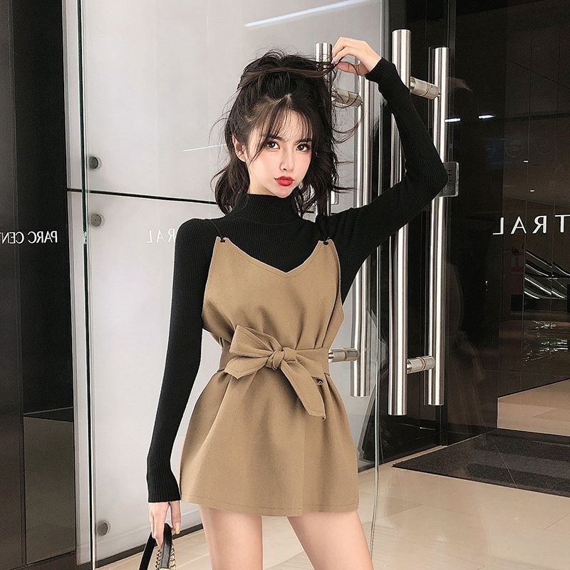 | nameOriginal | Single/suit Short Autumn/Winter Sweater Korean-style Base Shirt Tight Waist Elegant Women's Woolen Slip Skirt Two-piece Set |