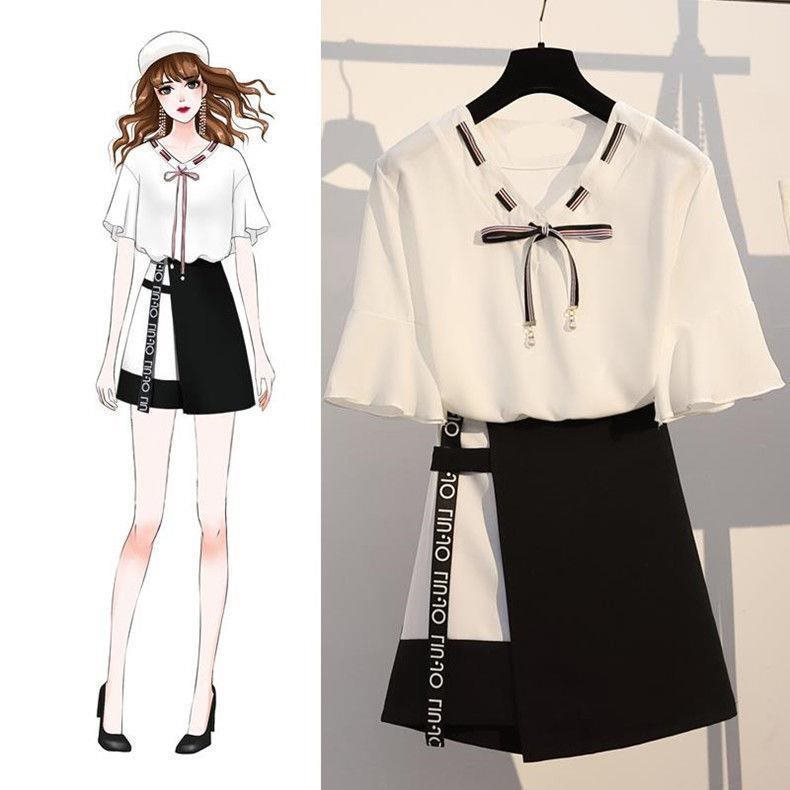 Single/suit Summer New Chiffon Fashion suit Female Student Korean-style Slimming Skirt Two-piece Girlfriend Dress