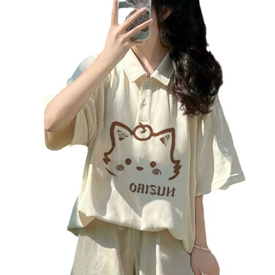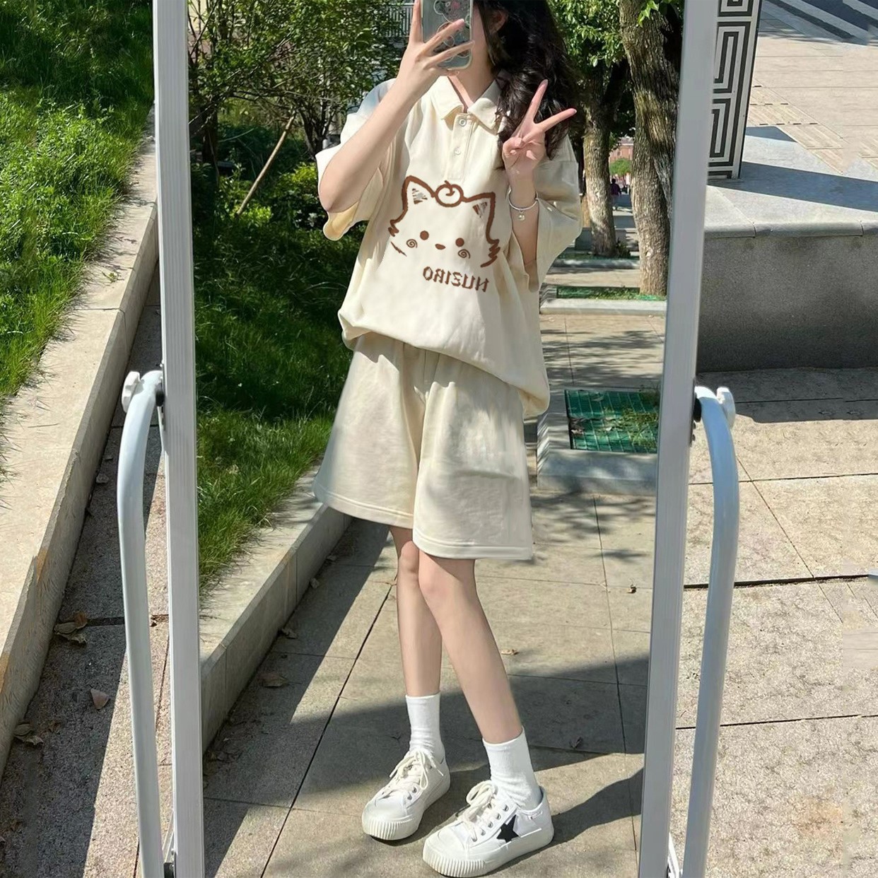 | nameOriginal | Single/suit Summer New Polo Shirt Short-sleeved T-shirt Female Student Sweet Loose Casual Shorts All-match Set |
