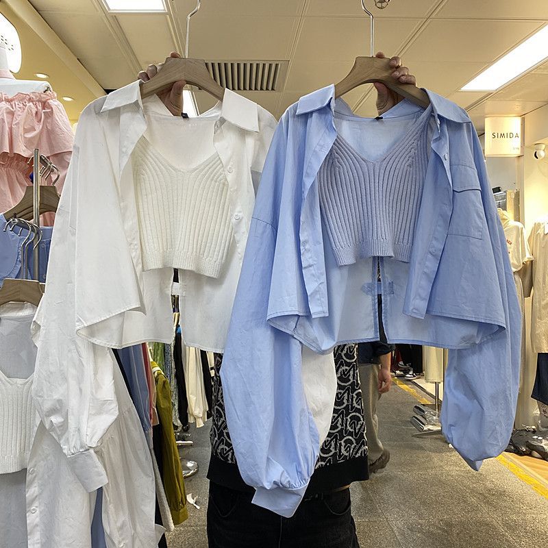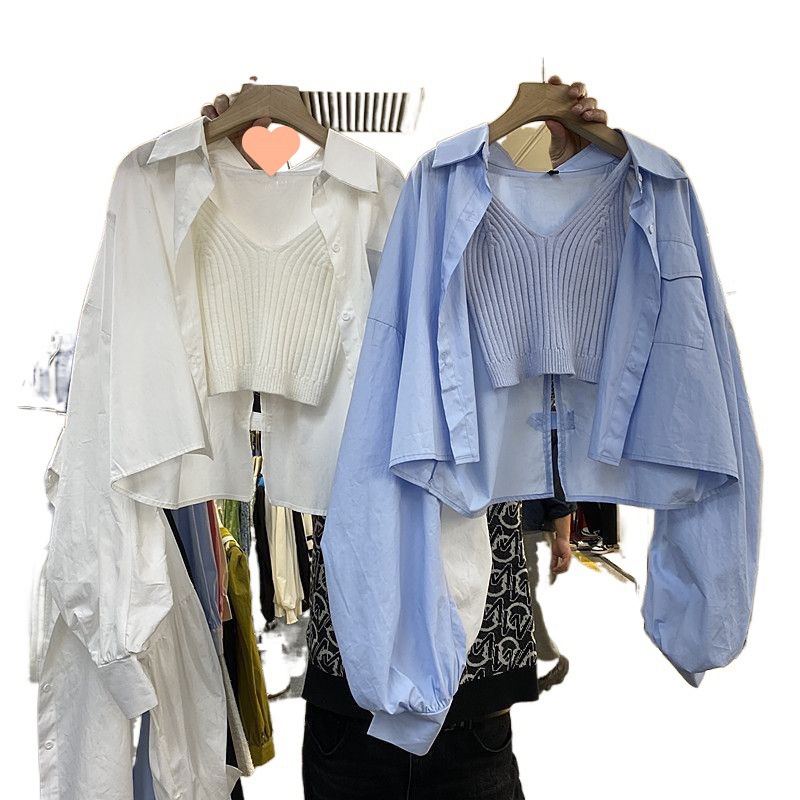 | nameOriginal | Single/Two-Piece Blue Long-Sleeved Shirt Jacket Women's Design Sense Fashion Short Top Camisole |