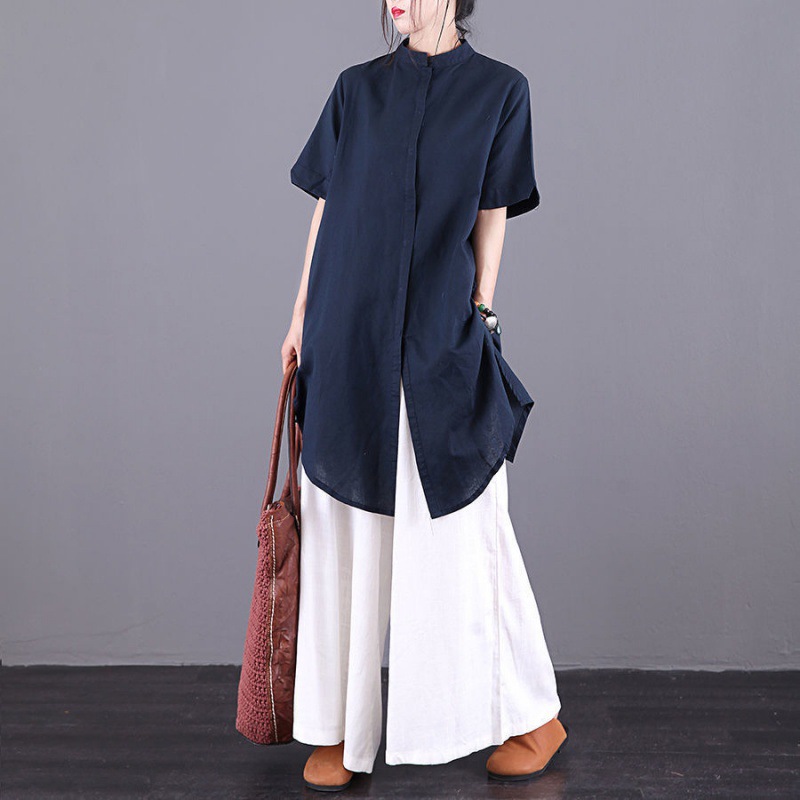Single/Two-piece Cotton Large Size Artistic Short-sleeved Shirt Women's 2021 Summer New Loose Wide-leg Pants Two-piece Set