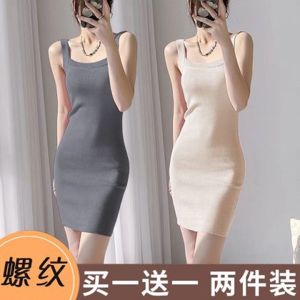 Single/Two-piece Sling dress Women’s Spring and Summer Spice Girls Pure Desire Inner Base Tight Sexy Hip Vest Skirt