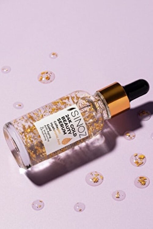 24K GOLD FACIAL CARE SERUM Sinoz 24K Gold Particle Beauty Serum, which has been on sale for many years and has reached millions of sales, remains the beauty secret of every woman. Thanks to Collagen in its formula, it supports the connective tissue of the skin. It also provides a radiant and smooth appearance while moisturizing the skin. Thanks to Hyaluronic Acid, it helps to increase the elasticity of the skin and achieve a tight appearance. It relieves the skin from dry and frayed appearance and promotes it to become radiant, smooth and firm. The real gold particles contained in it are absorbed by the skin to help the skin become shiny and firm, like porcelain. As with all Sinoz products, Sinoz 24K Gold Facial Care Serum all the necessary assets in our product are used in enough proportions. When you use our product regularly, you get the full value for your money. The product does not leave a feeling of stickiness or greasiness. It is odorless. Enjoy beauty with Sinoz Golden Serum. How to Use Sinoz 24K Gold Facial Care Serum is recommended to take before bedtime every night. It is recommended to test it on the inside of your wrist at first use. Ingredients: :Aqua, Gold, Phenoxyethanol, HydrolyzedCollagen, Glycerin, Acrylates/C10-30 Alkyl Acrylate Crosspolymer, Hydroxyethylcellulose, Ethylhexylglycerin, Sodium Hyaluronate, SodiumHydroxide, Hydrolyzed Algin.