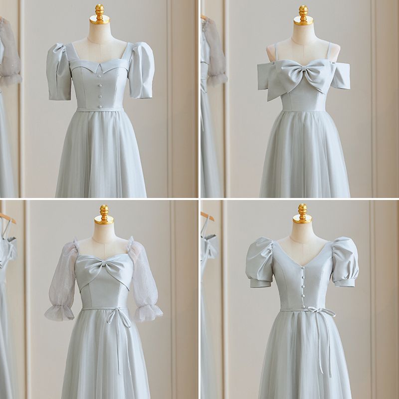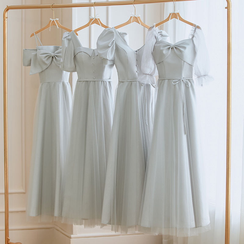 Sister Dress Grey Bridesmaid Dress Spring and Autumn 2024 New Satin Long Sense Group Dress Women’s Peacetime Wear Cross-border Dress