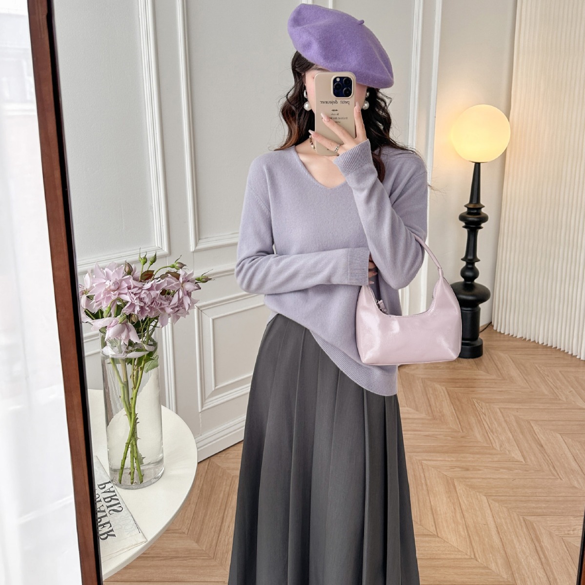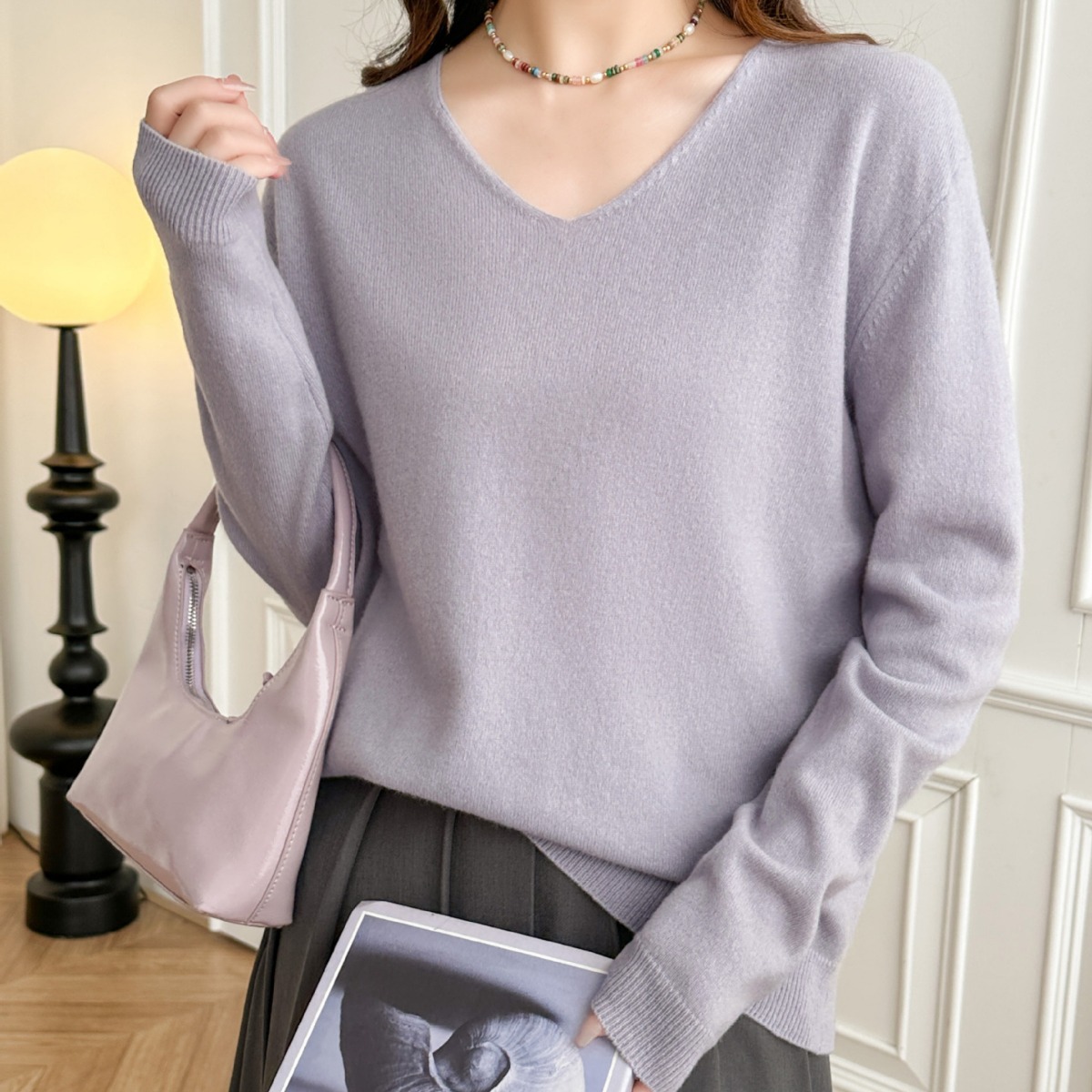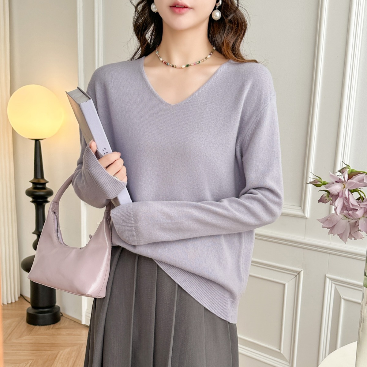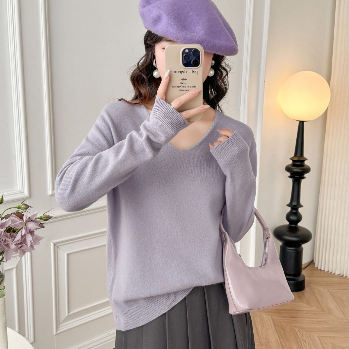 | nameOriginal | Sister JILL's same clavicle all-in-one machine 2024 early spring wool V-neck sweater lazy bottoming sweater |
