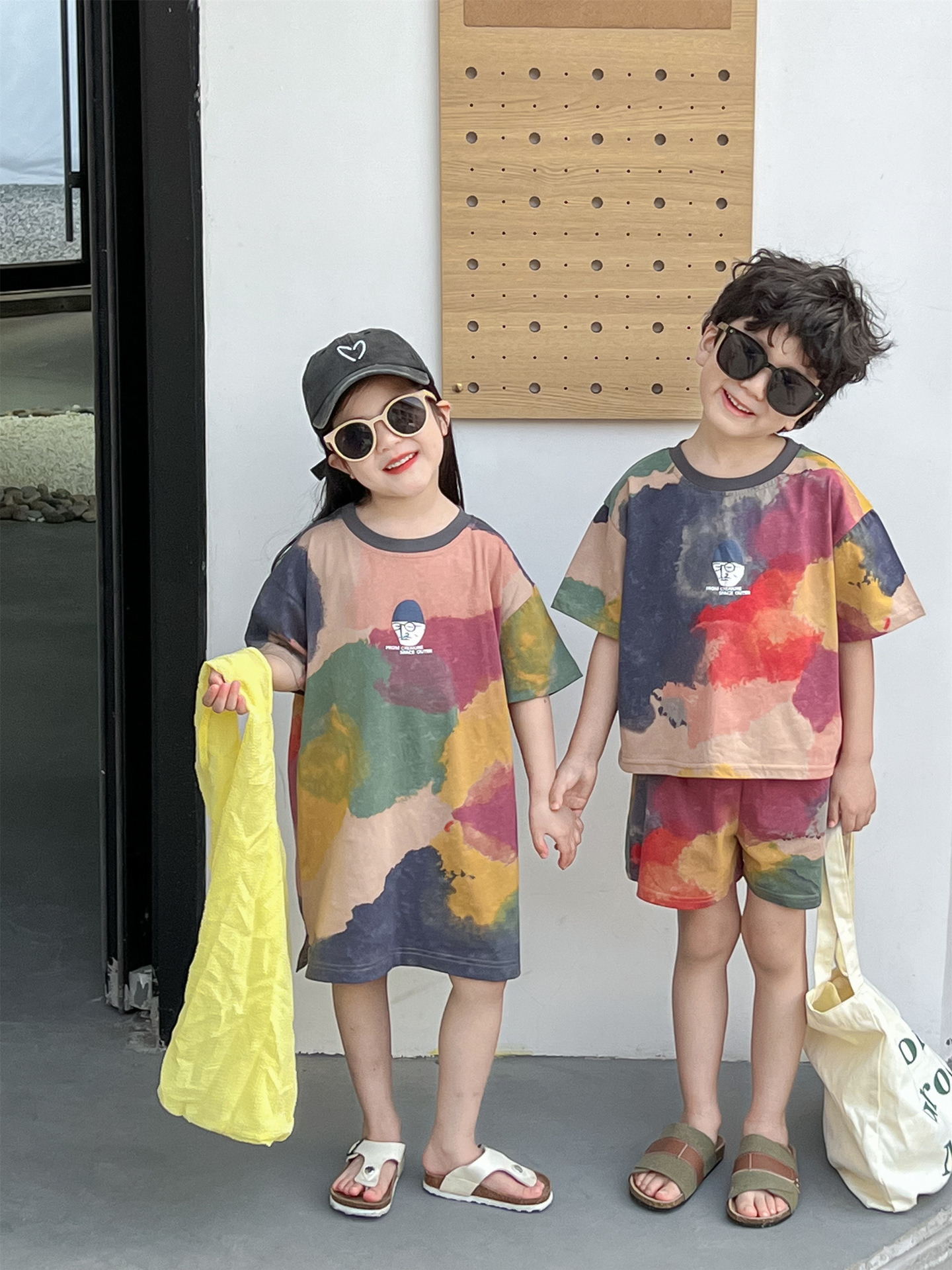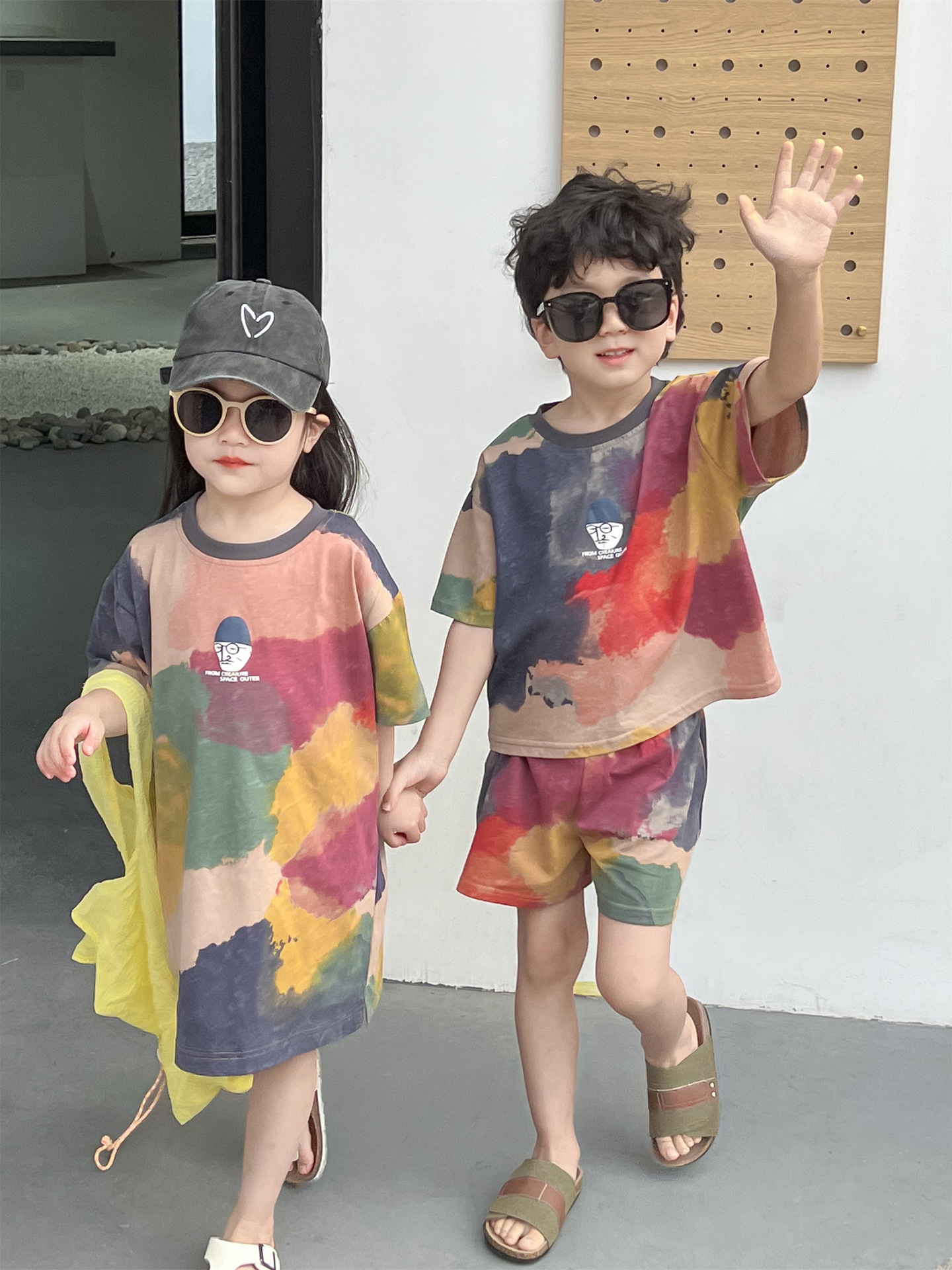 | nameOriginal | Sister's Dress Summer Casual Sportswear Girl's Letter Graffiti Short-sleeved dress Boy's Short-sleeved Short Pants Cover Brother's and Sister's Dress |