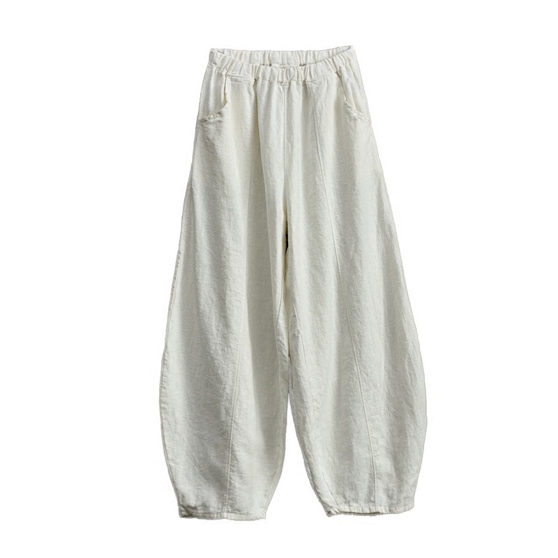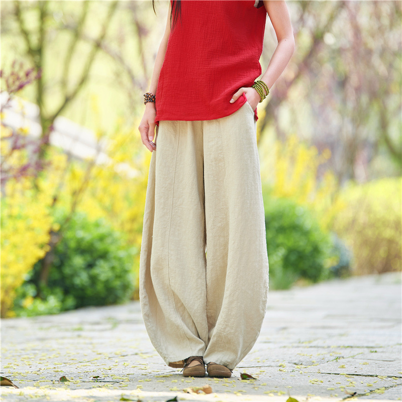 Six-color Japanese 2023 Summer New Cotton and Linen Bloomers Zen Tight Waist Large Size Loose Trousers for Women