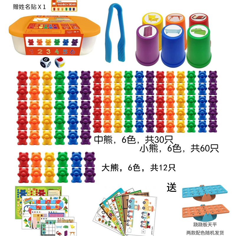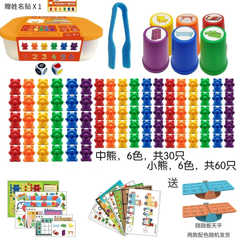 | nameOriginal | Six-color weight bear counting mathematical thinking enlightenment color recognition Montessori mathematics teaching aids toys kindergarten 2+ |