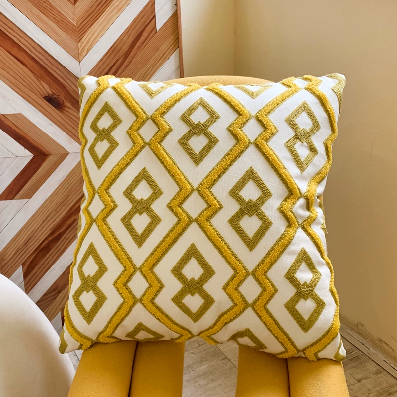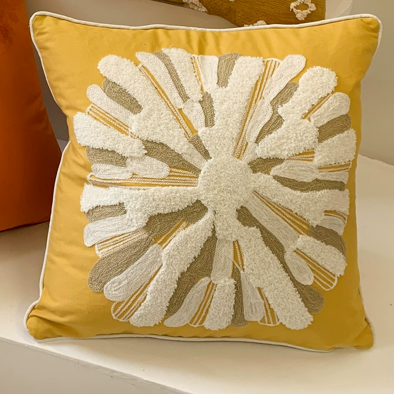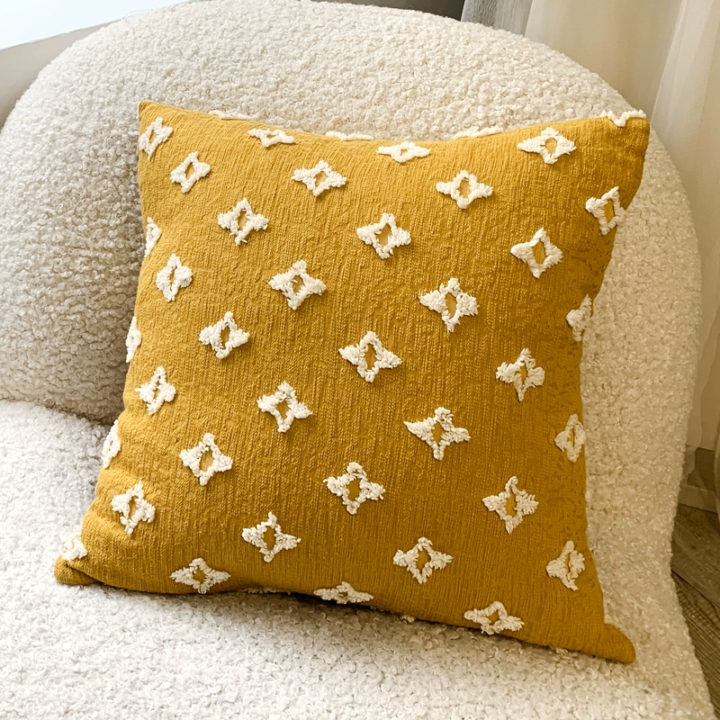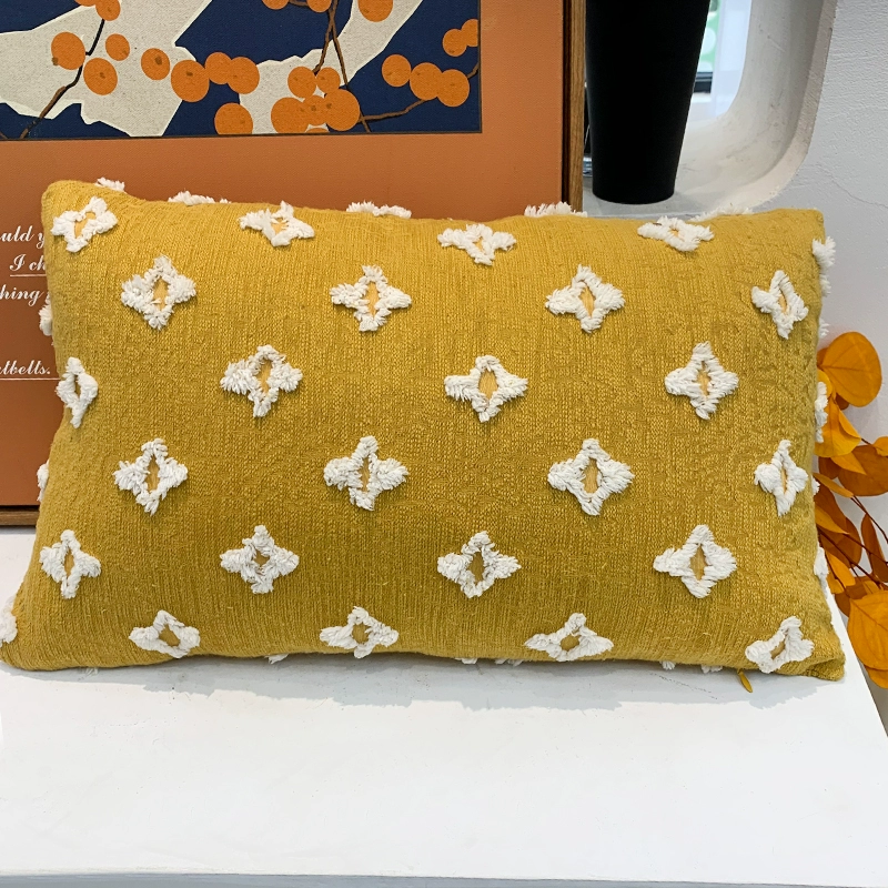 Six-petal flower pillow, yellow Nordic geometric cushion, living room sofa pillow, houndstooth pillowcase, orange American back cushion