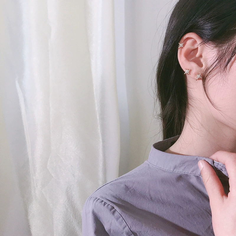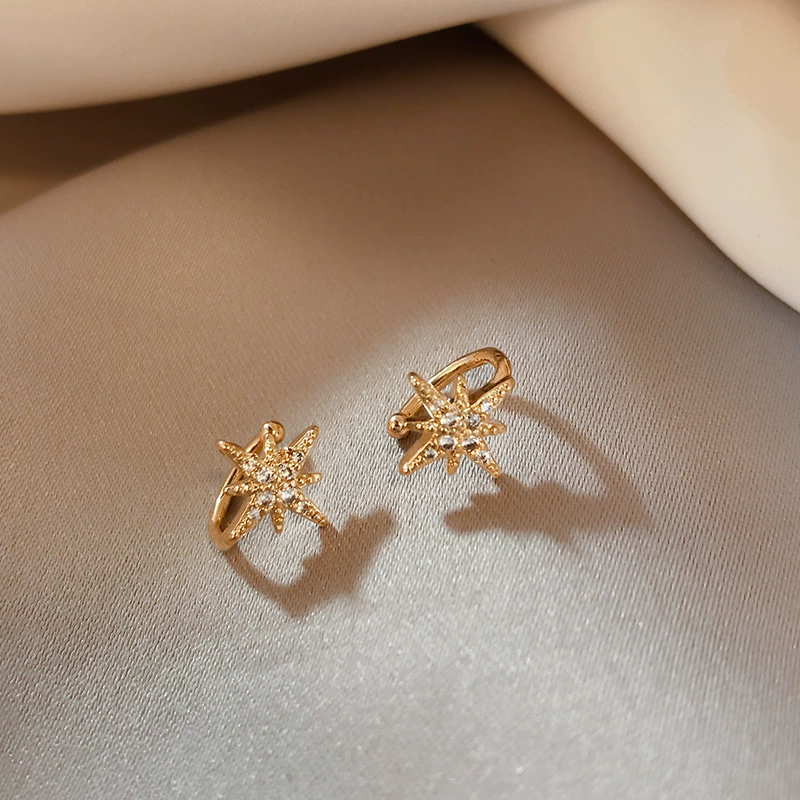 Six-pointed star ear clip without pierced ears for women, simple French student style, small ear bone clip, cute Japanese girl, high-end