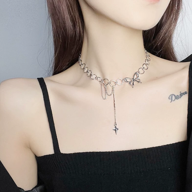 | nameOriginal | Six-pointed star Japanese versatile necklace for women butterfly safety lock |