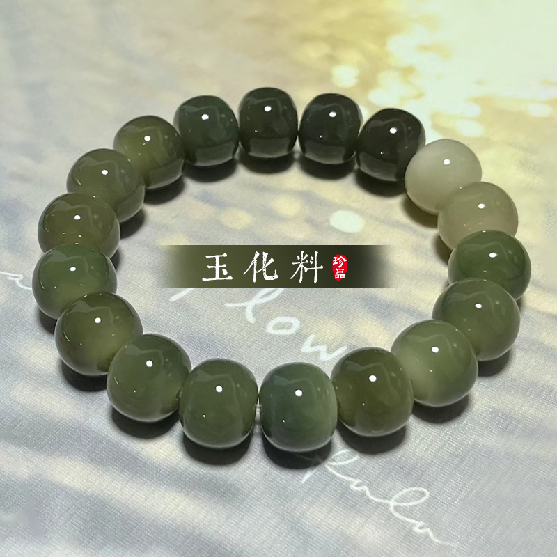 Six years of jade old material white jade bodhi root bracelet female text play around the finger soft bodhi son beads men's plate play bracelet