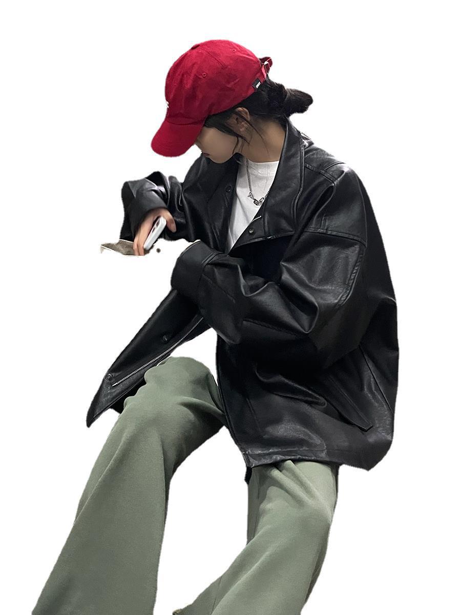 | nameOriginal | SIXI SIXI spring motorcycle girl profile handsome stand collar leather coat women's loose slimming jacket |