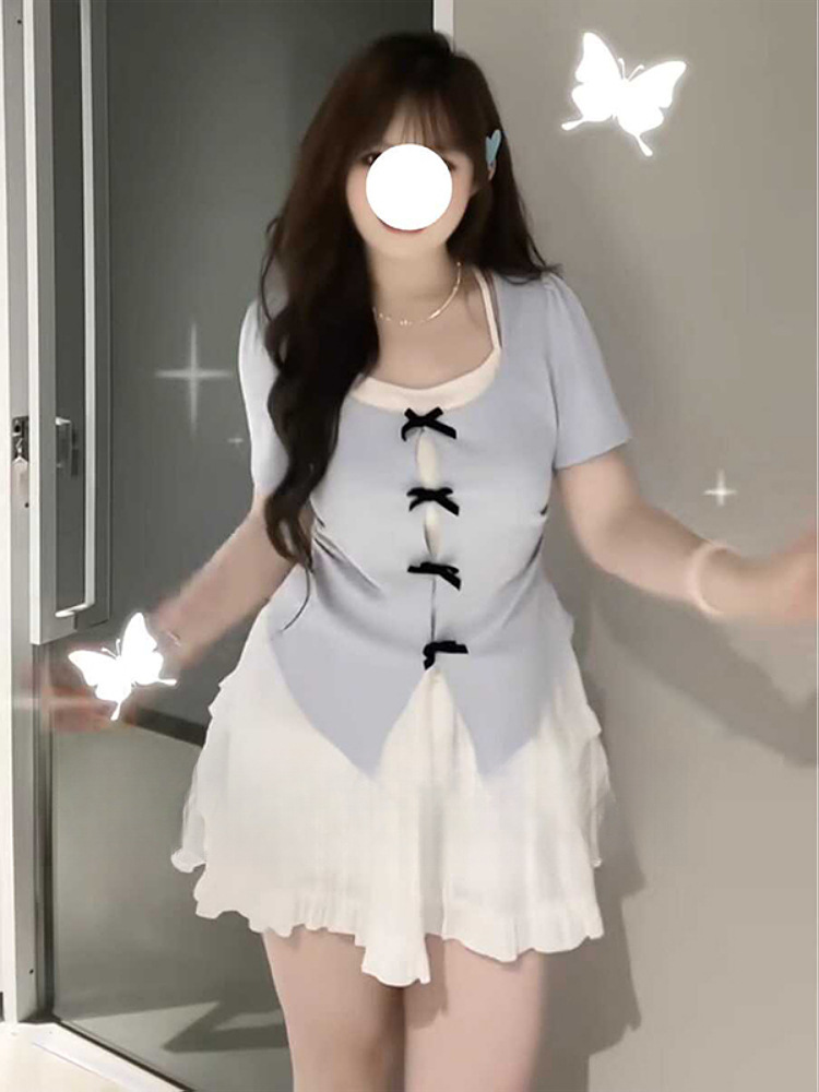 | nameOriginal | Size Pure Desire Half-length White Cake Skirt Summer chubby girl Belly Covering Slimming Fake Two-piece Top Fashion suit |