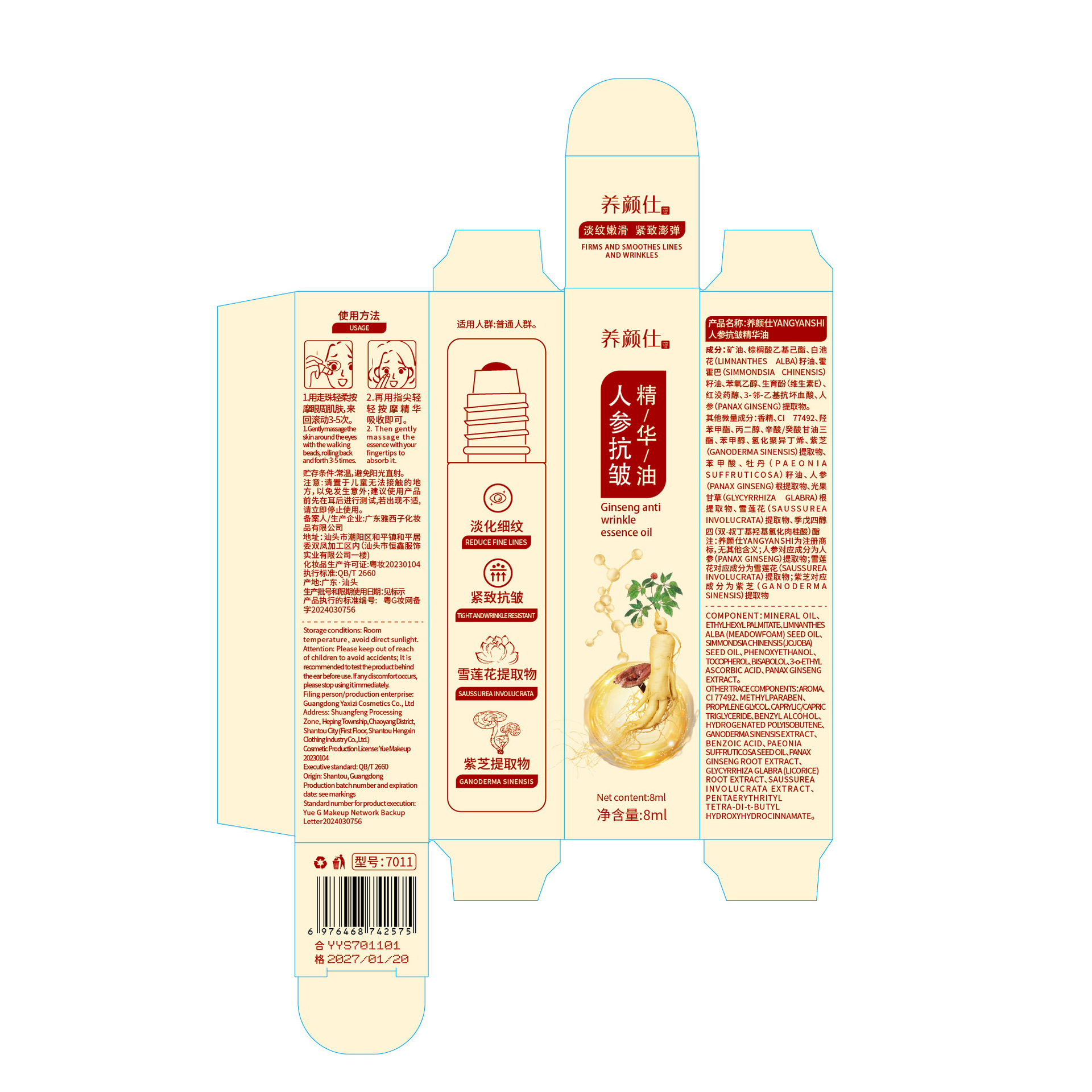 | nameOriginal | Skin care ginseng Anti-Wrinkle Essence Oil anti-wrinkle firming moisturizing fade fine lines dark circles eye essence oil |