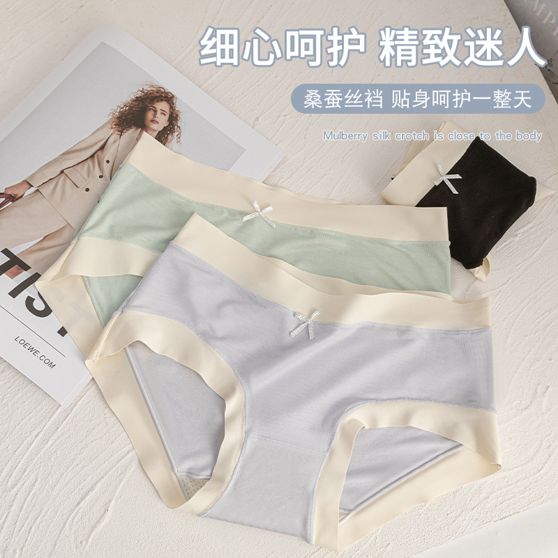 | nameOriginal | Skin-friendly comfortable 7A antibacterial women's underwear mulberry silk crotch seamless underwear simple mid-waist underwear women's wholesale |