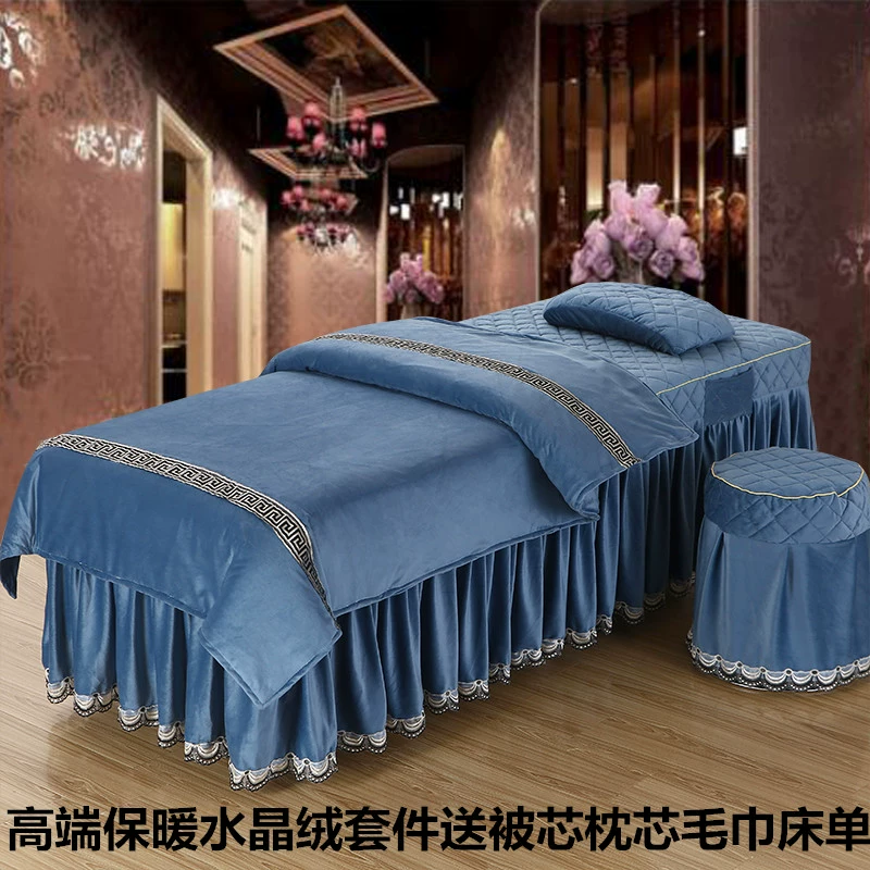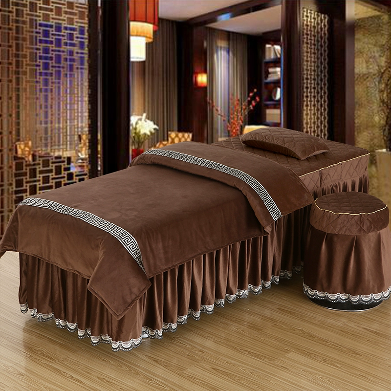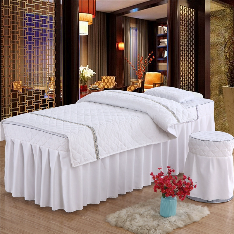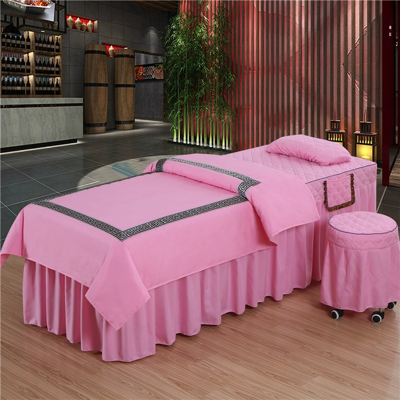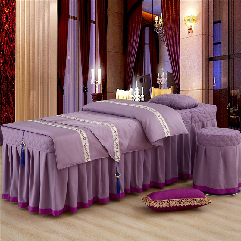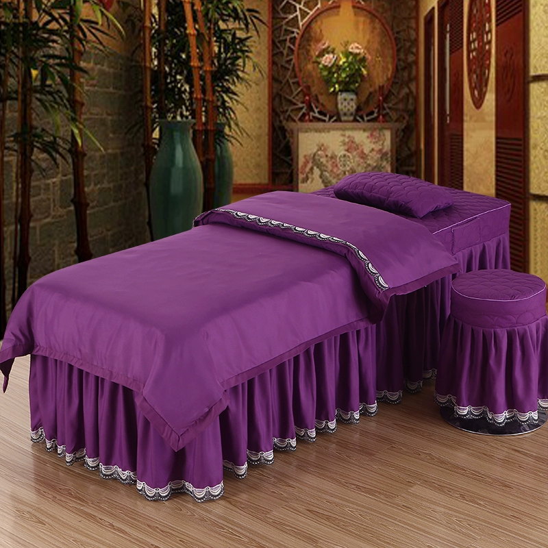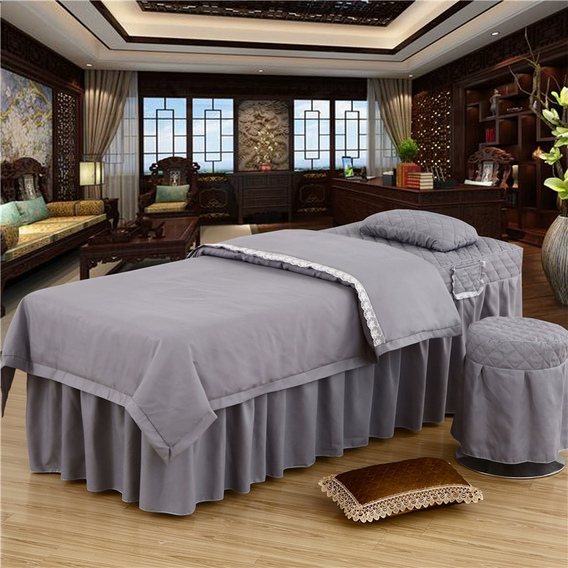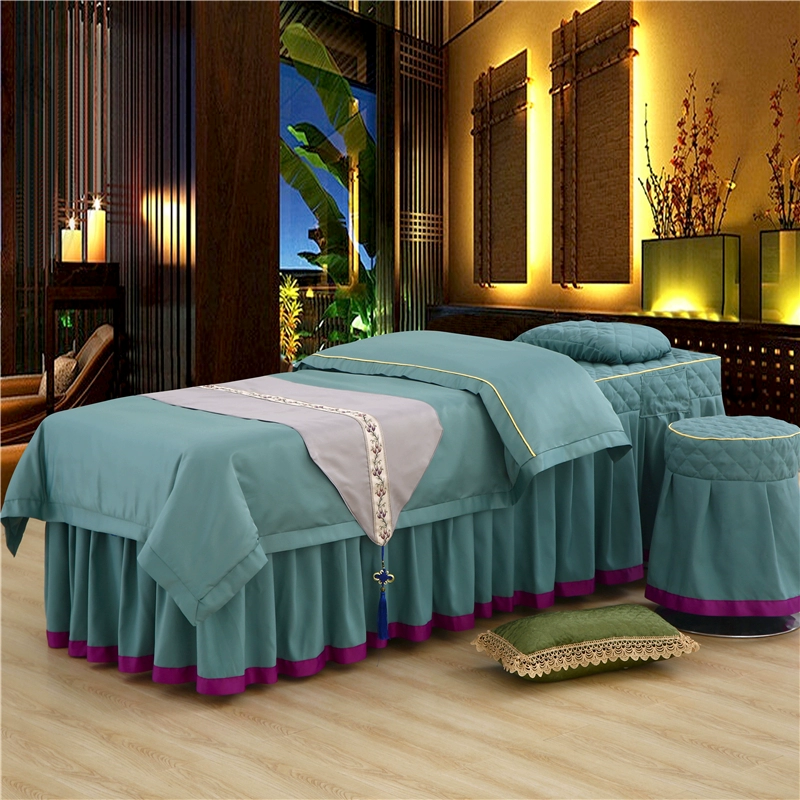 Skin-friendly cotton beauty bedspread four-piece set Thai simple light luxury solid color massage therapy shampoo bed sheet bed cover