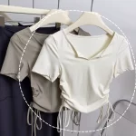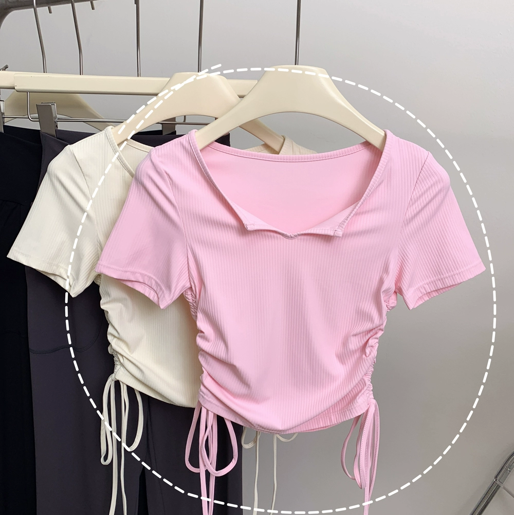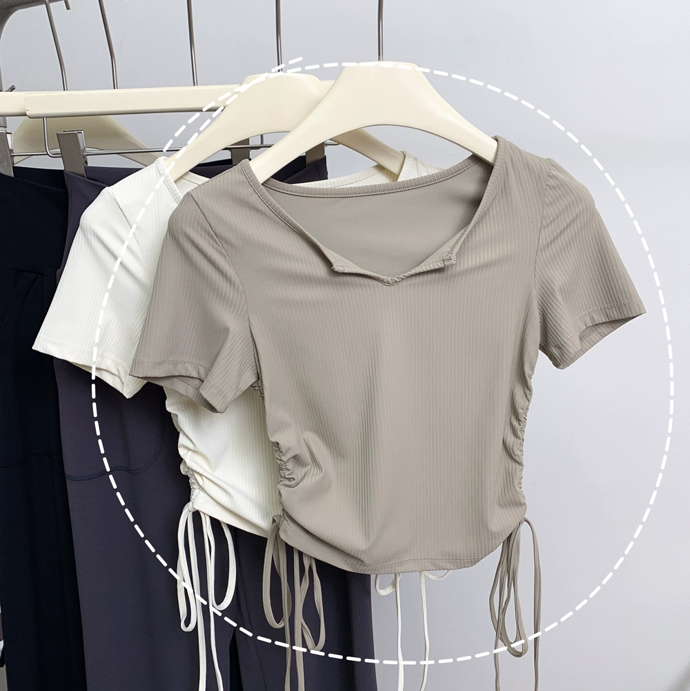 | nameOriginal | Skin-friendly short-sleeved T-shirt women's fitness wear sports V-neck drawstring |