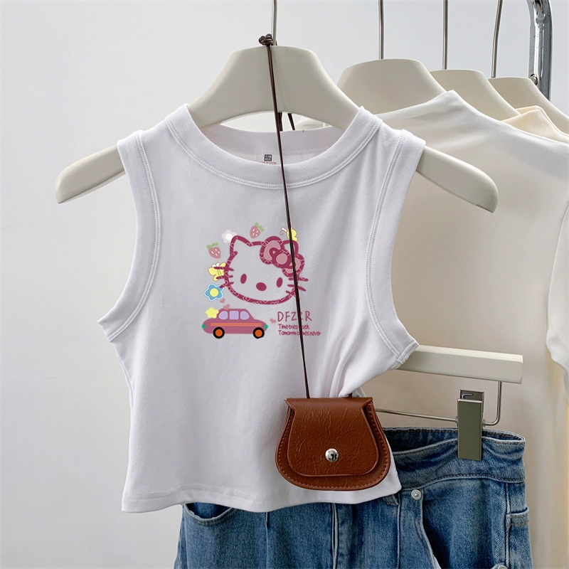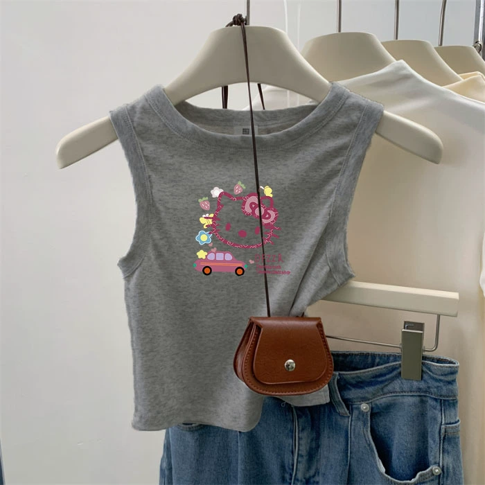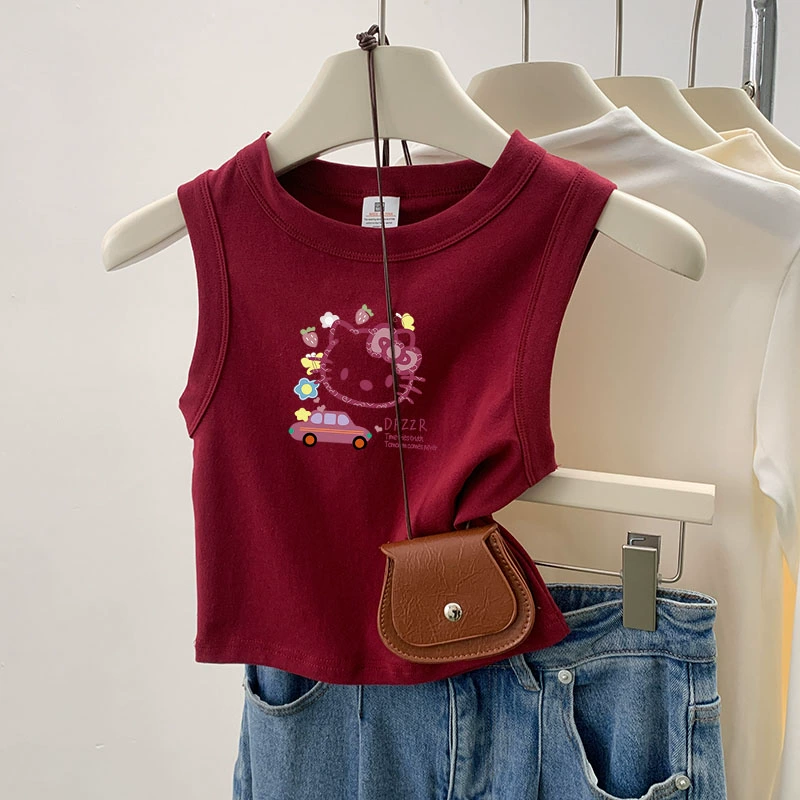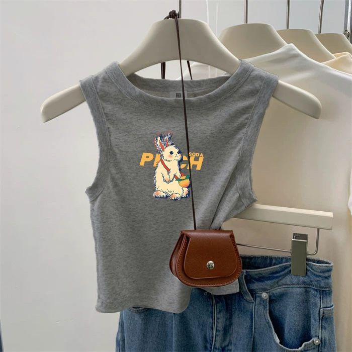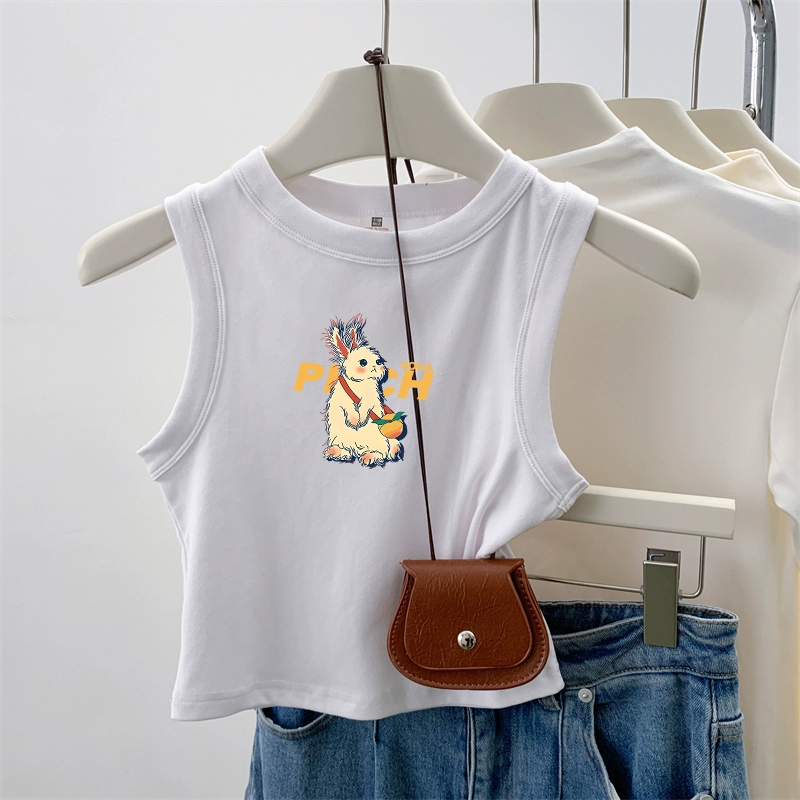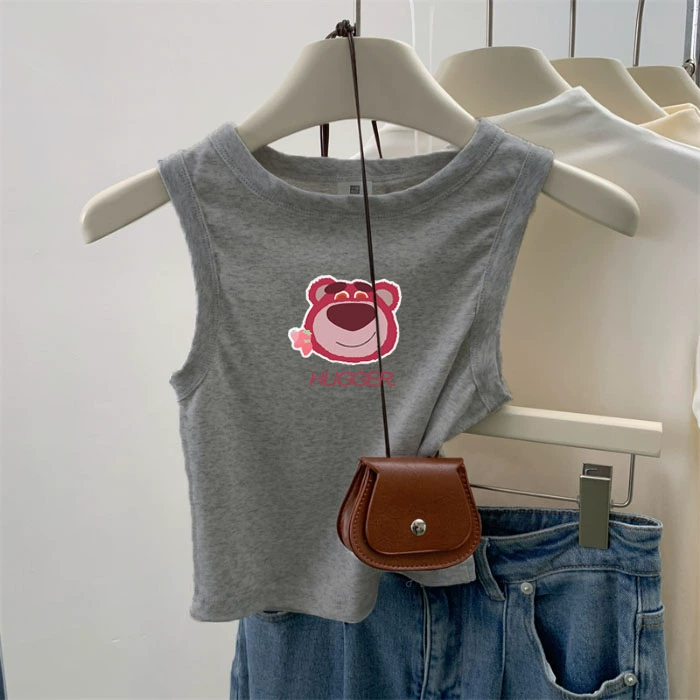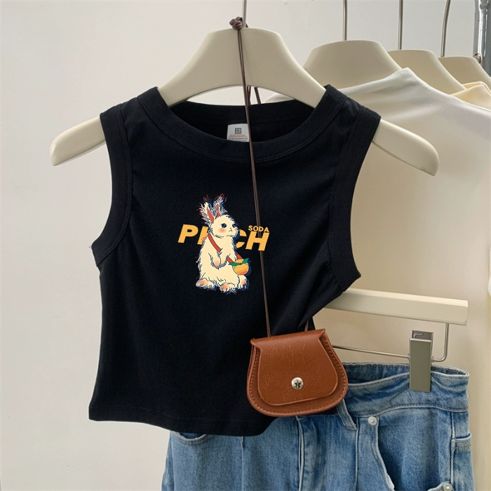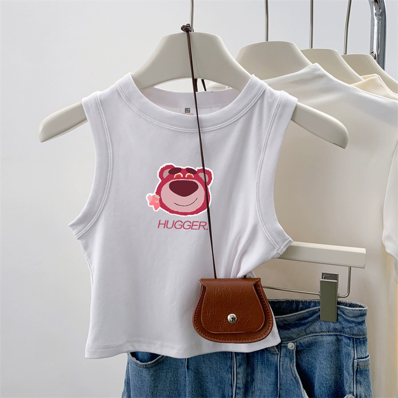 Skin-friendly vest girl 2024 summer new fashionable children’s cartoon sleeveless round neck small and medium-sized children’s tops wear fashionable outside