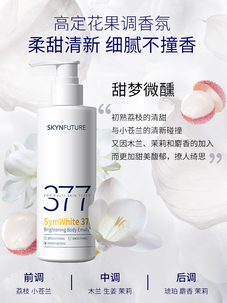 | nameOriginal | Skin Future 377 Whitening Body Lotion Summer Moisturizing and Hydrating Contains Skin Care Glycerin, Smooth and Moisturizing with Long-lasting Fragrance |
