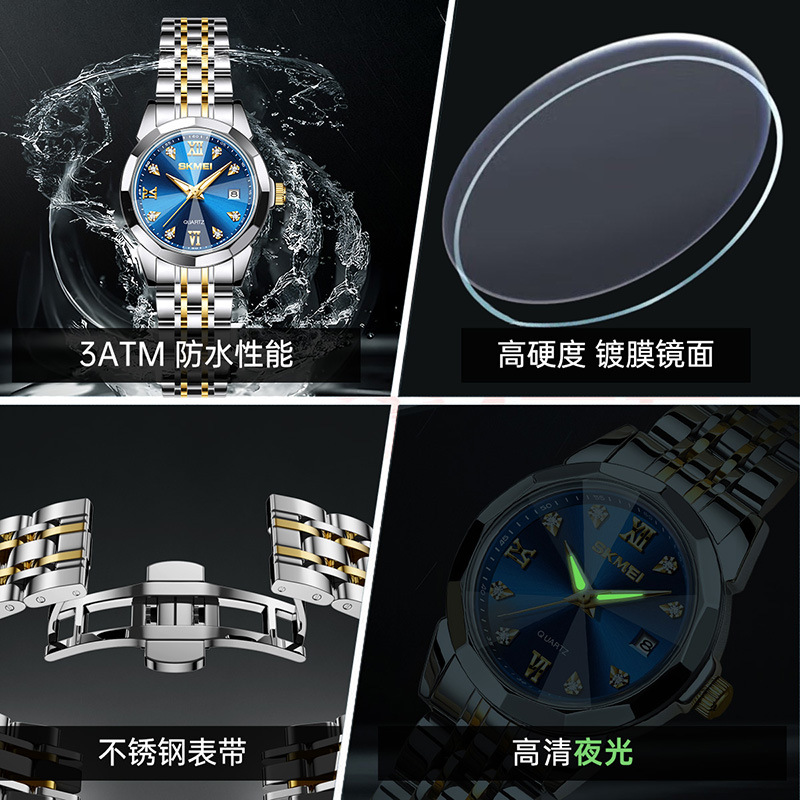 SKMEI Timely Beauty Brand TikTok Live Broadcast Hot Selling Diamond-encrusted Waterproof Quartz Women's Single Calendar Watch Women's Wrist Watch