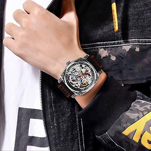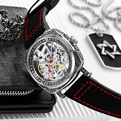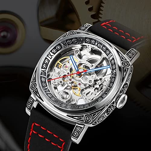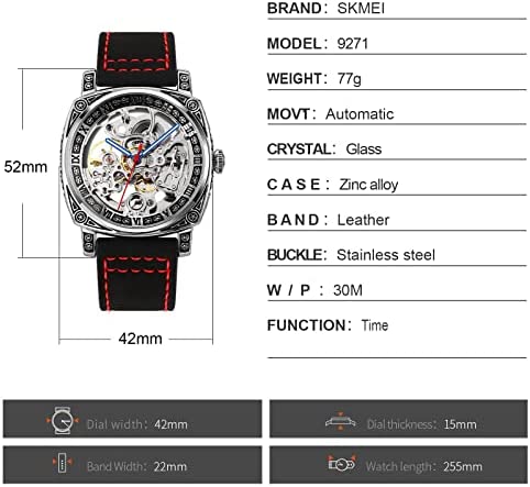 | nameOriginal | SKMEI Wrist Watch for Men, Fashion Mechanical Men Wrist Watch, Silver Skeleton Dial Automatic Movement Leather Watch Bands Design with Classic Roman Number Business Watch for Men |