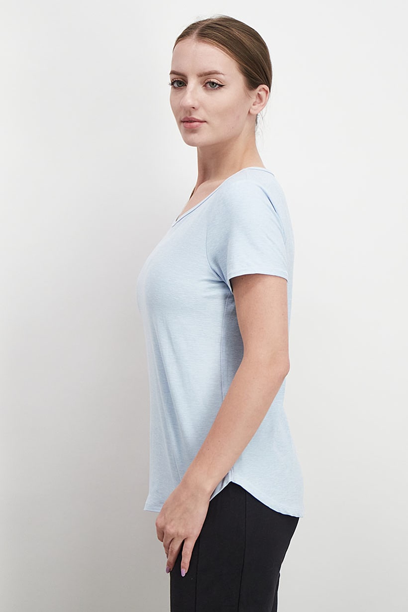 | nameOriginal | Women 2 Piece Sport Fit Short Sleeve Plain Top, Sky Blue and White |