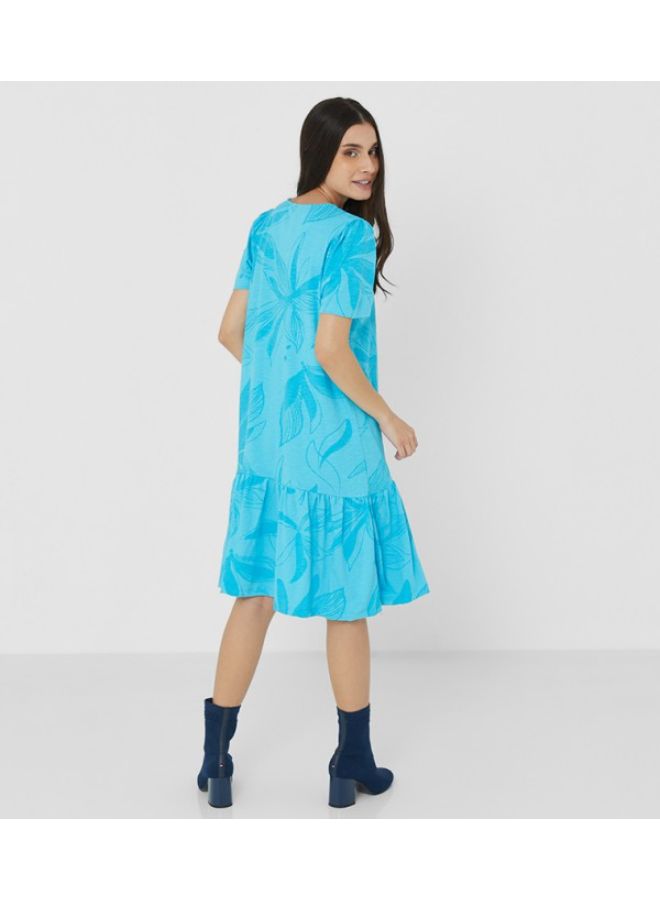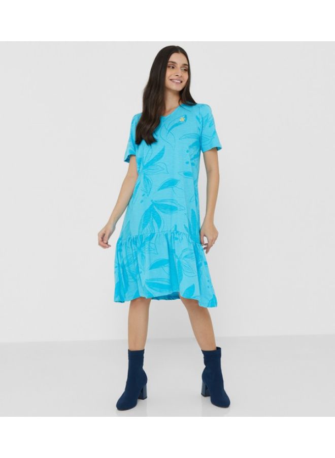 Nature Floral Drop Waist Dress Sky Blue
